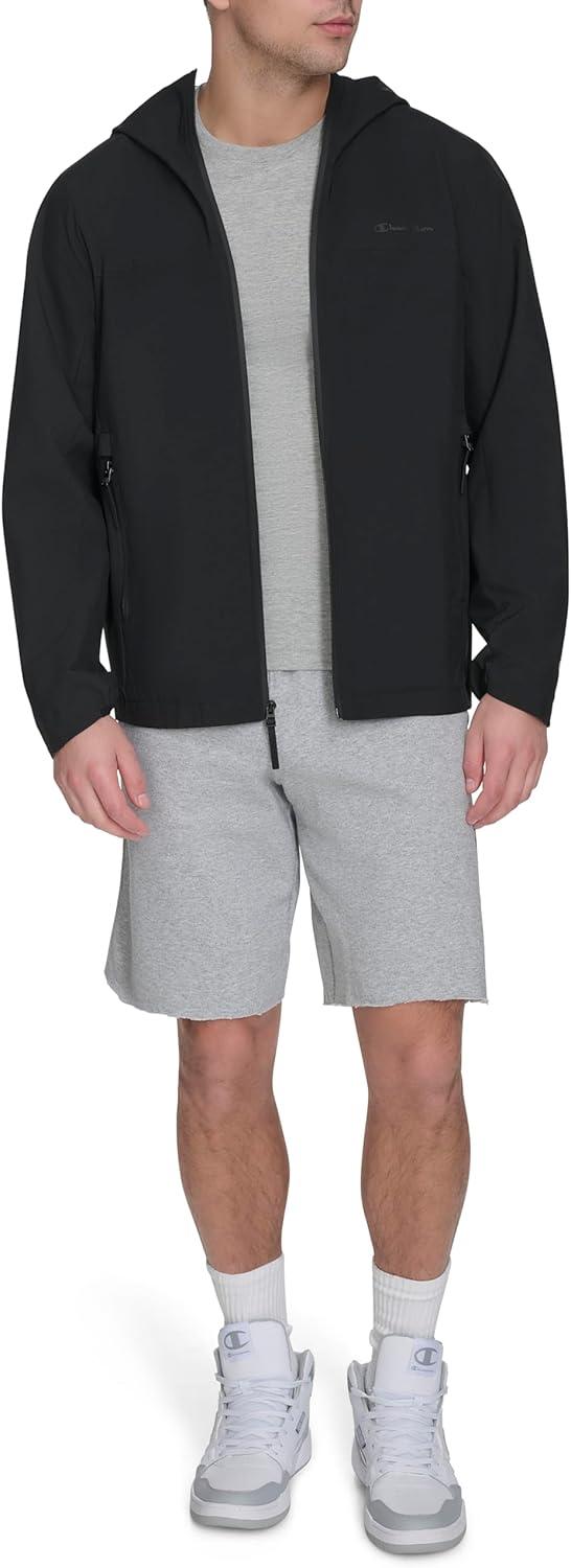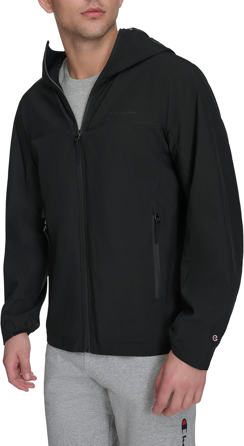Champion mens Hooded Coaches Rain Jacket(Black Soft Shell)