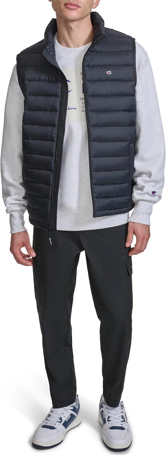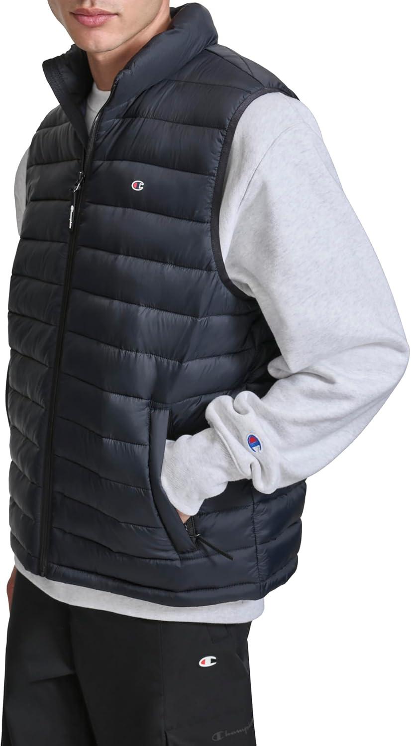 Champion mens Packable Puffer Vest With Stand Collar(Black)