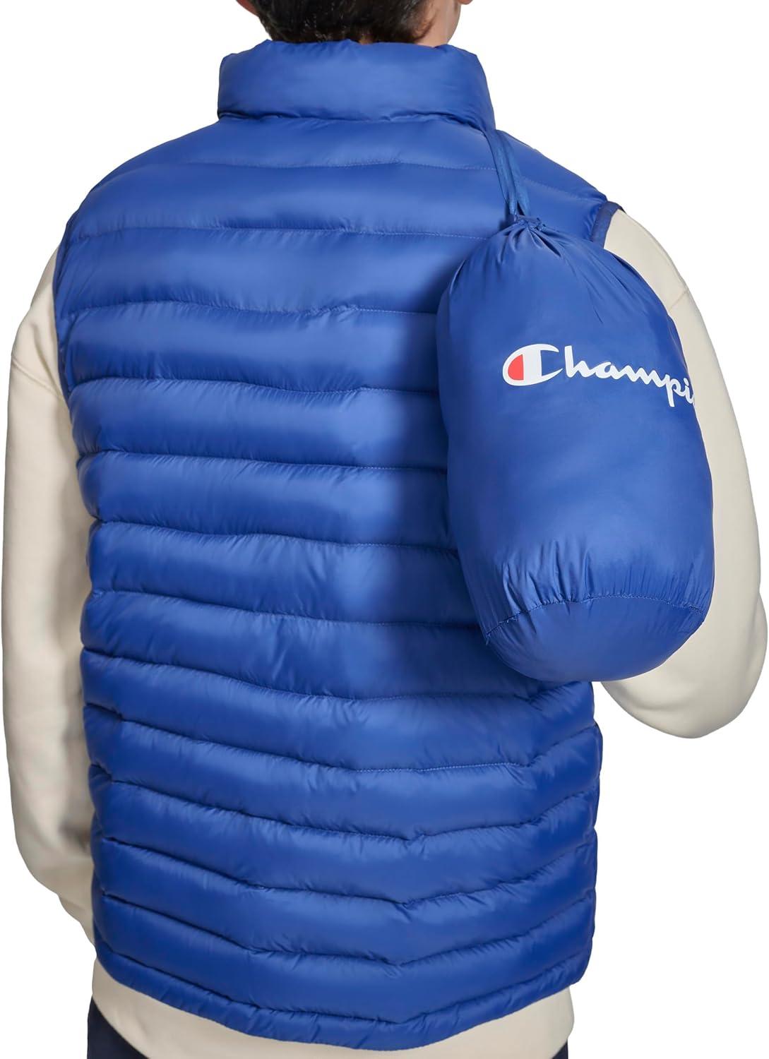 Champion mens Packable Puffer Vest With Stand Collar(Blue)