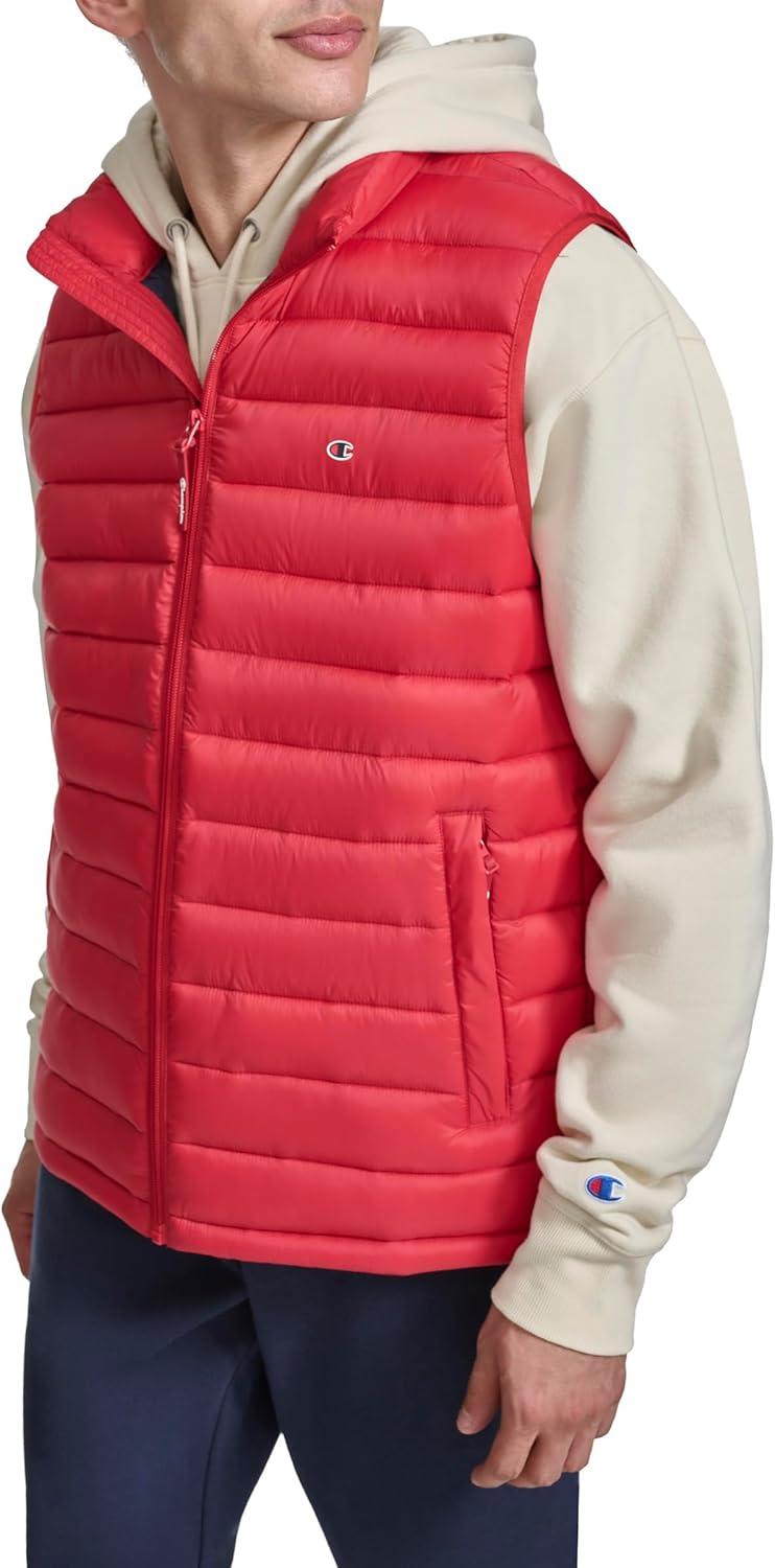 Champion mens Packable Puffer Vest With Stand Collar(Chili Pepper)