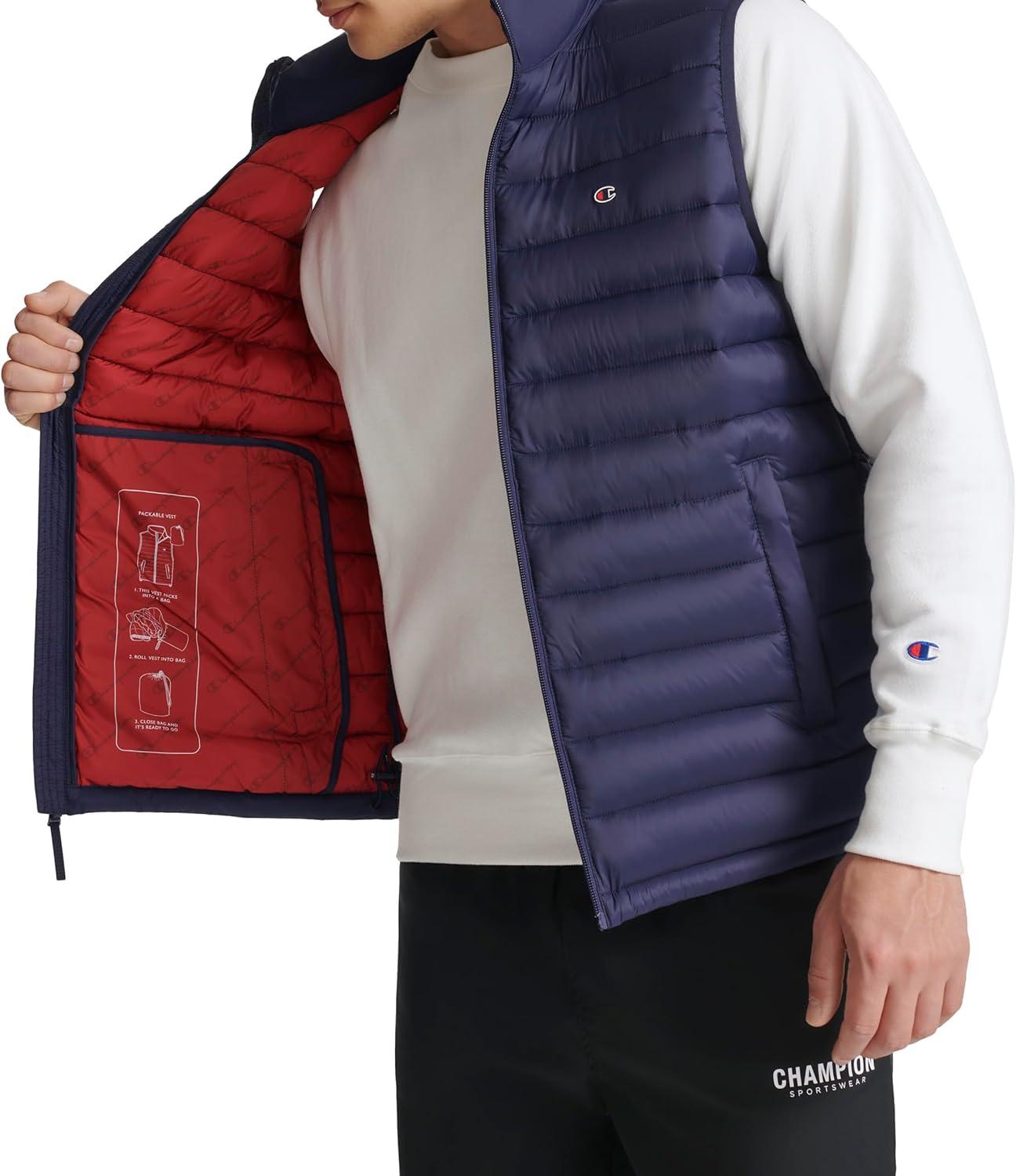 Champion mens Packable Puffer Vest With Stand Collar(Peacoat)