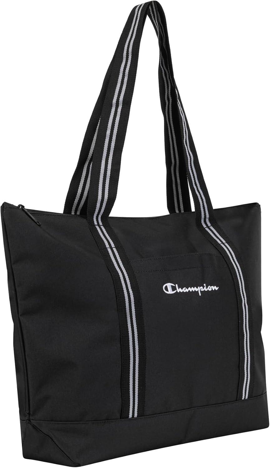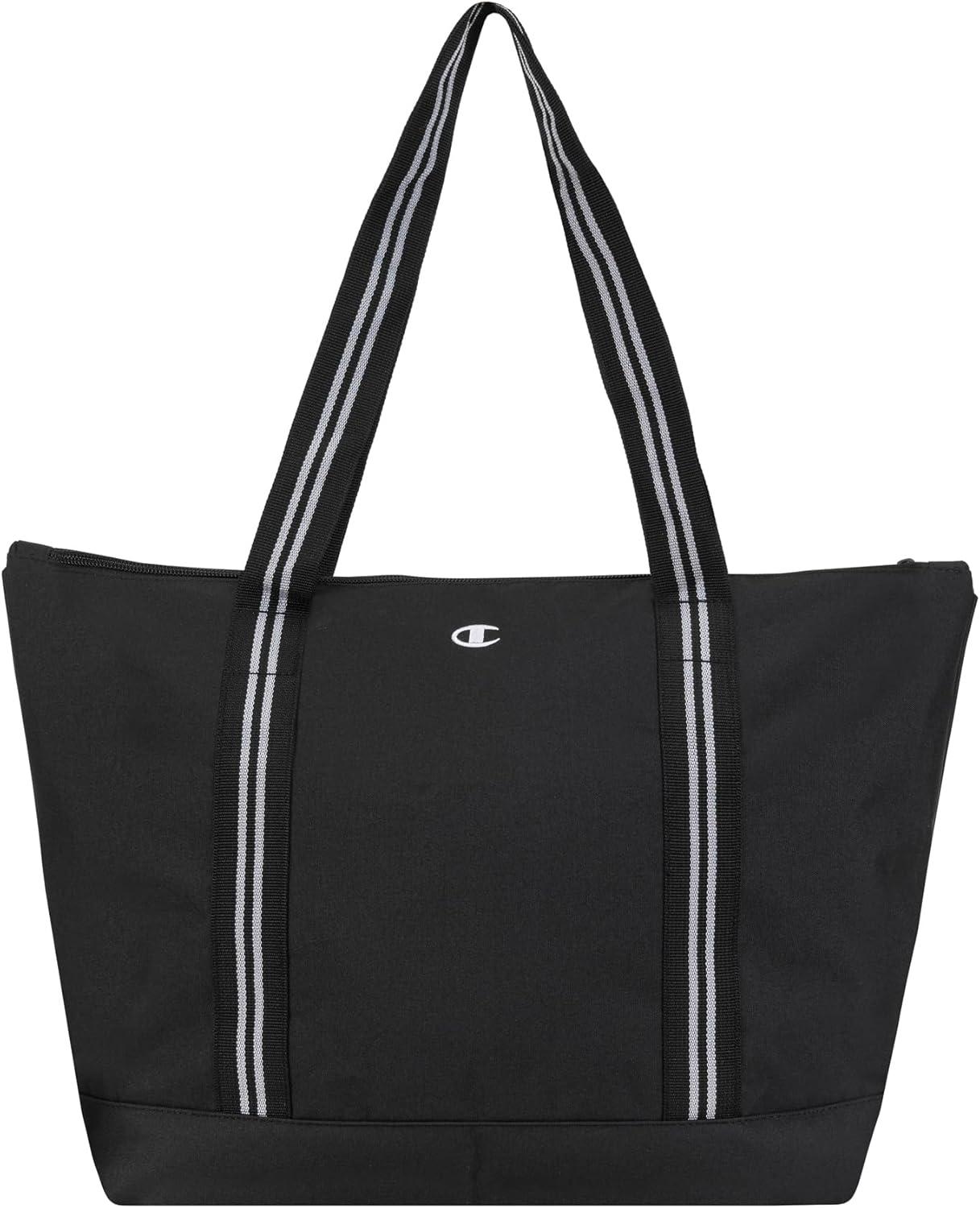 Champion Varsity Tote Bag with Zip Closure and Interior Mesh Pockets for Work, Travel, Daily Use, Our Favorite Fuchsia(Black)
