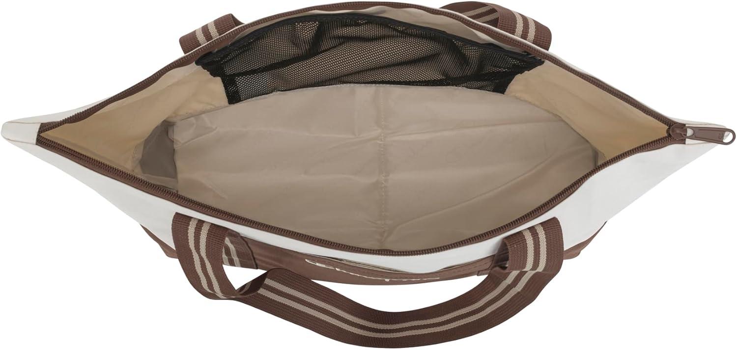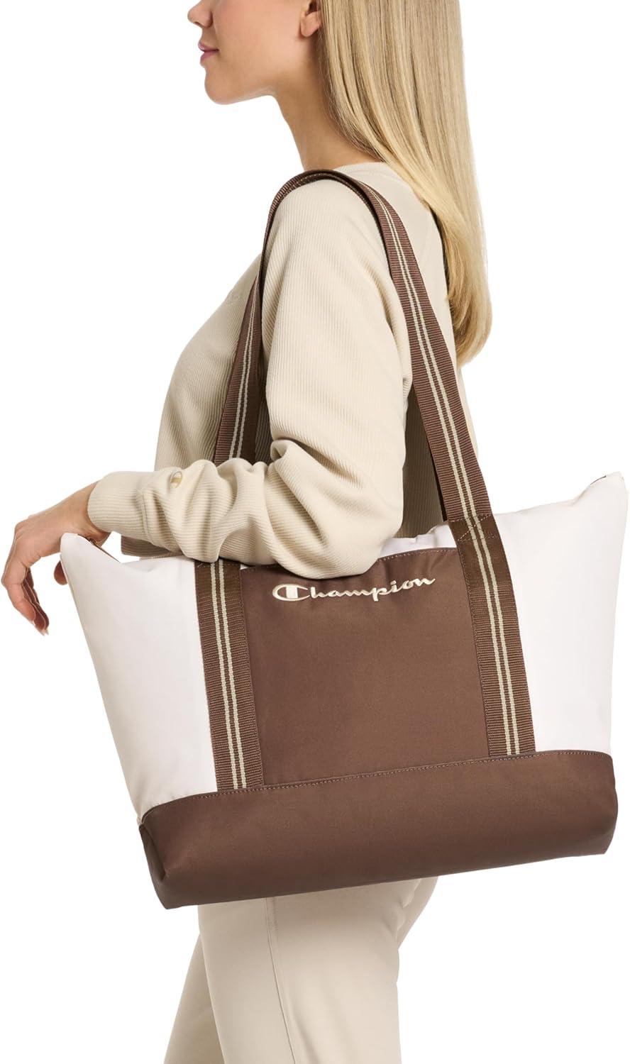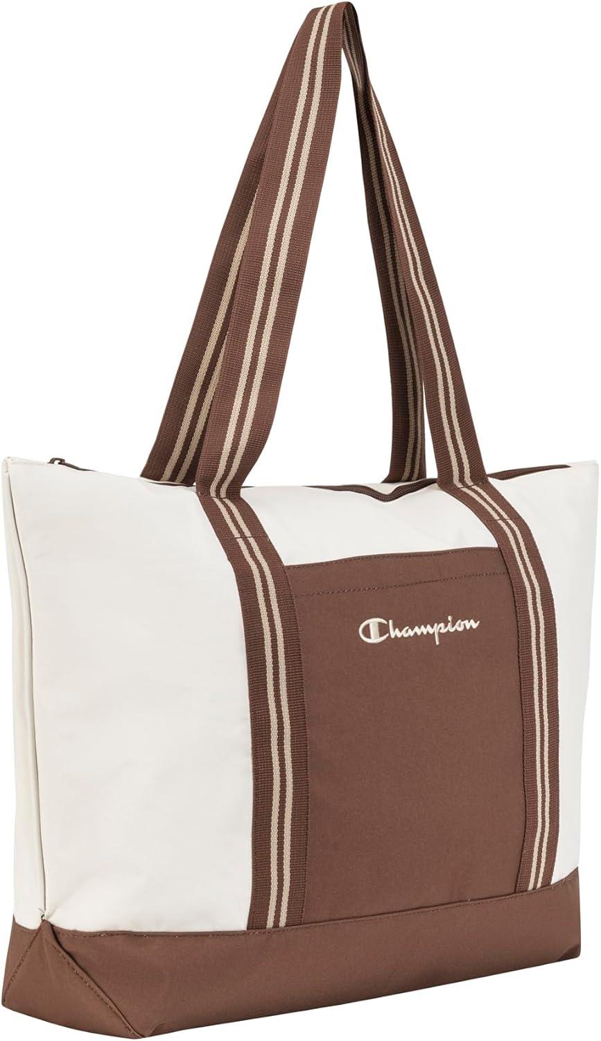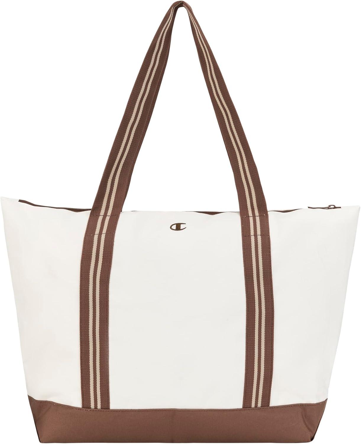 Champion Varsity Tote Bag with Zip Closure and Interior Mesh Pockets for Work, Travel, Daily Use, Our Favorite Fuchsia(Natural/Brown)