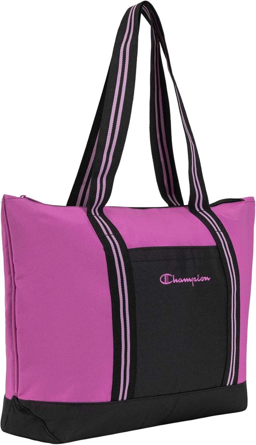 Champion Varsity Tote Bag with Zip Closure and Interior Mesh Pockets for Work, Travel, Daily Use, Our Favorite Fuchsia(Our Favorite Fuchsia)