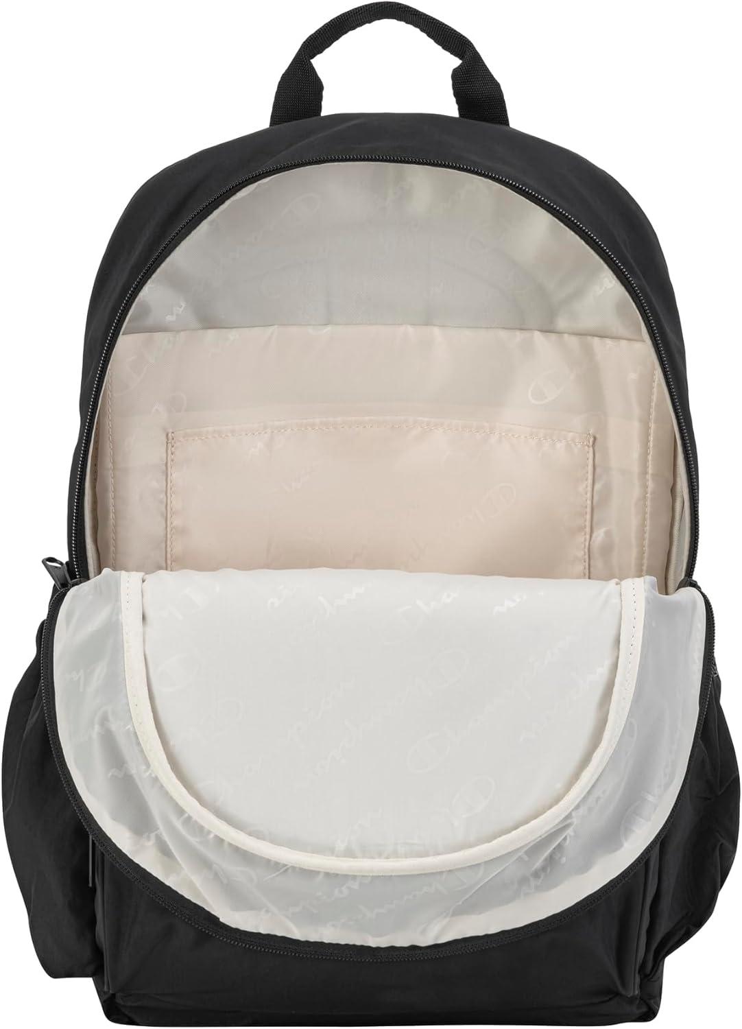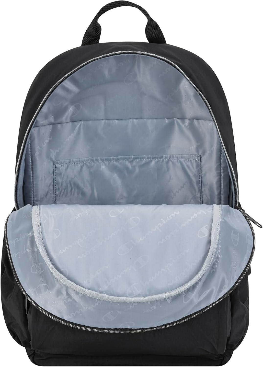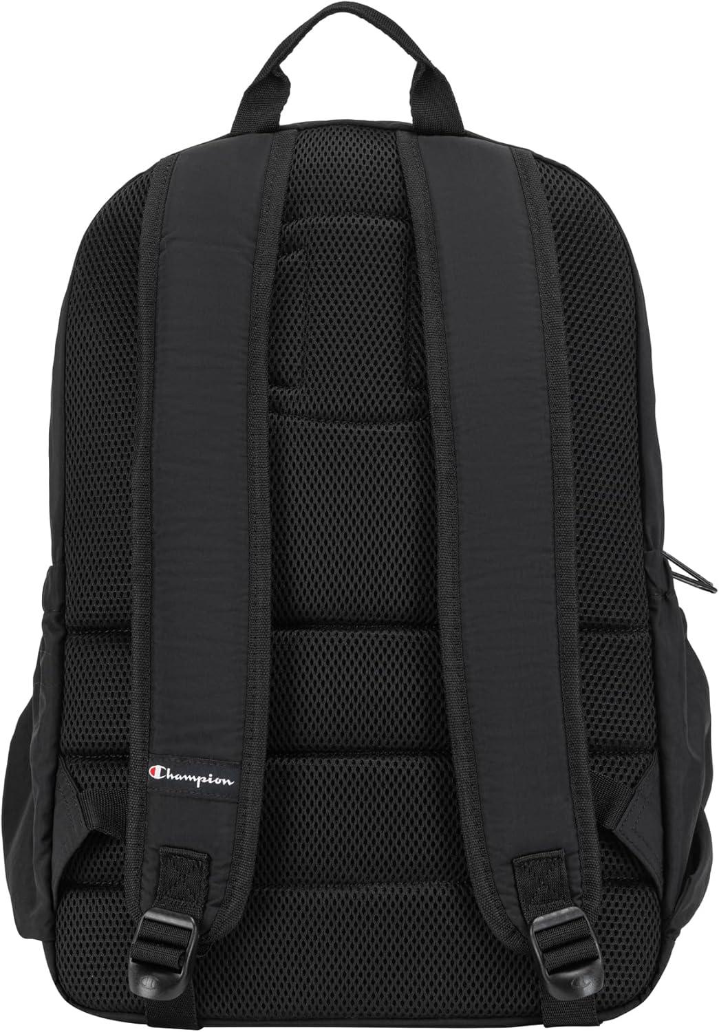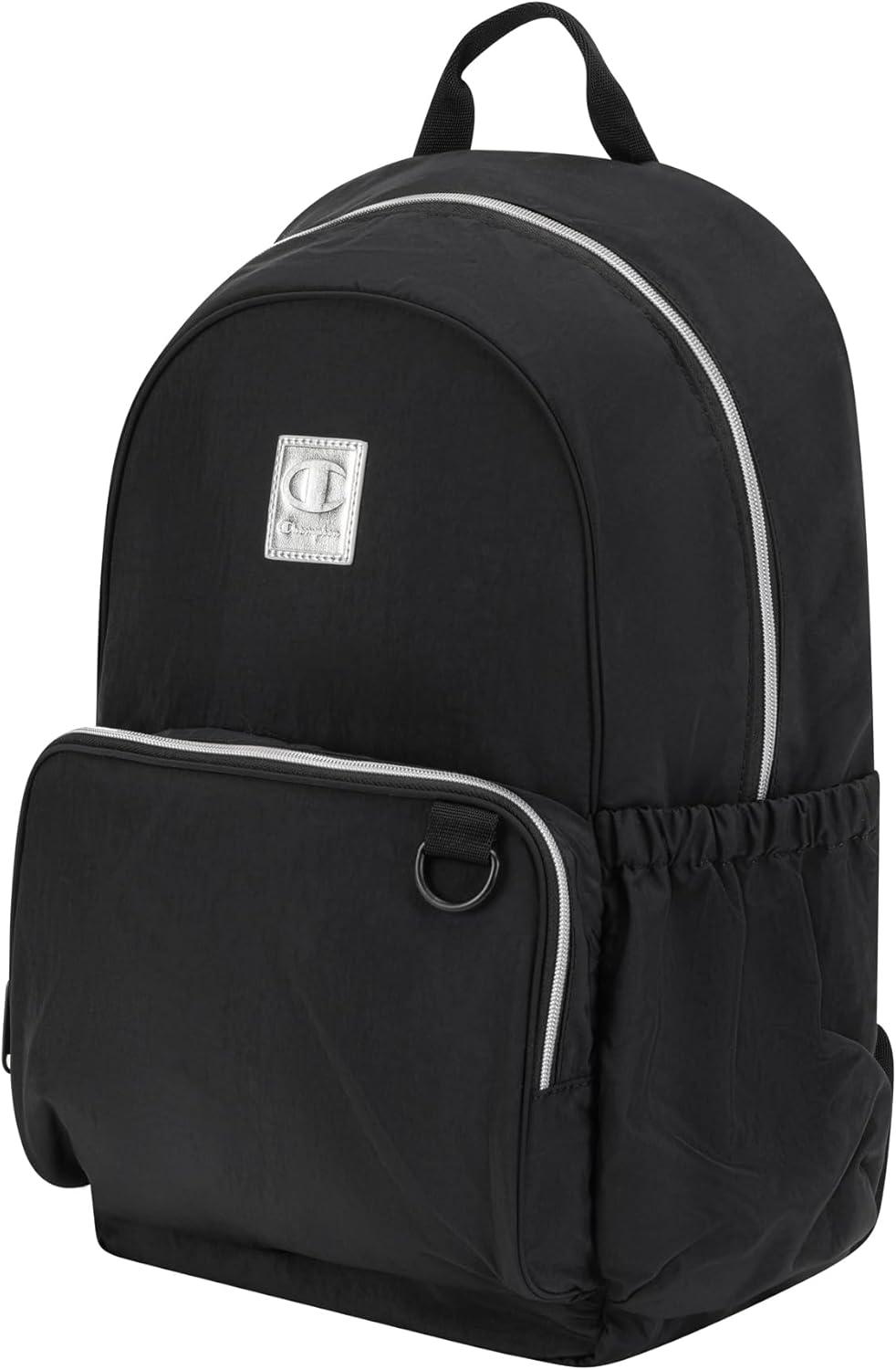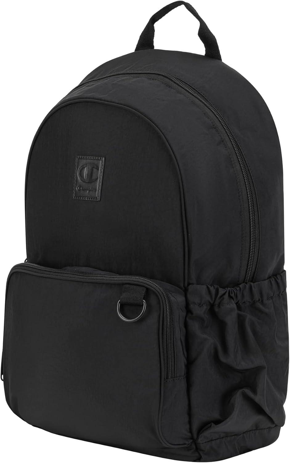 Champion Venice Laptop Backpack in Crinkle Nylon with Padded Adjustable Straps, Water Bottle Pocket for Work, Travel, Commute, Black, Medium(Black)