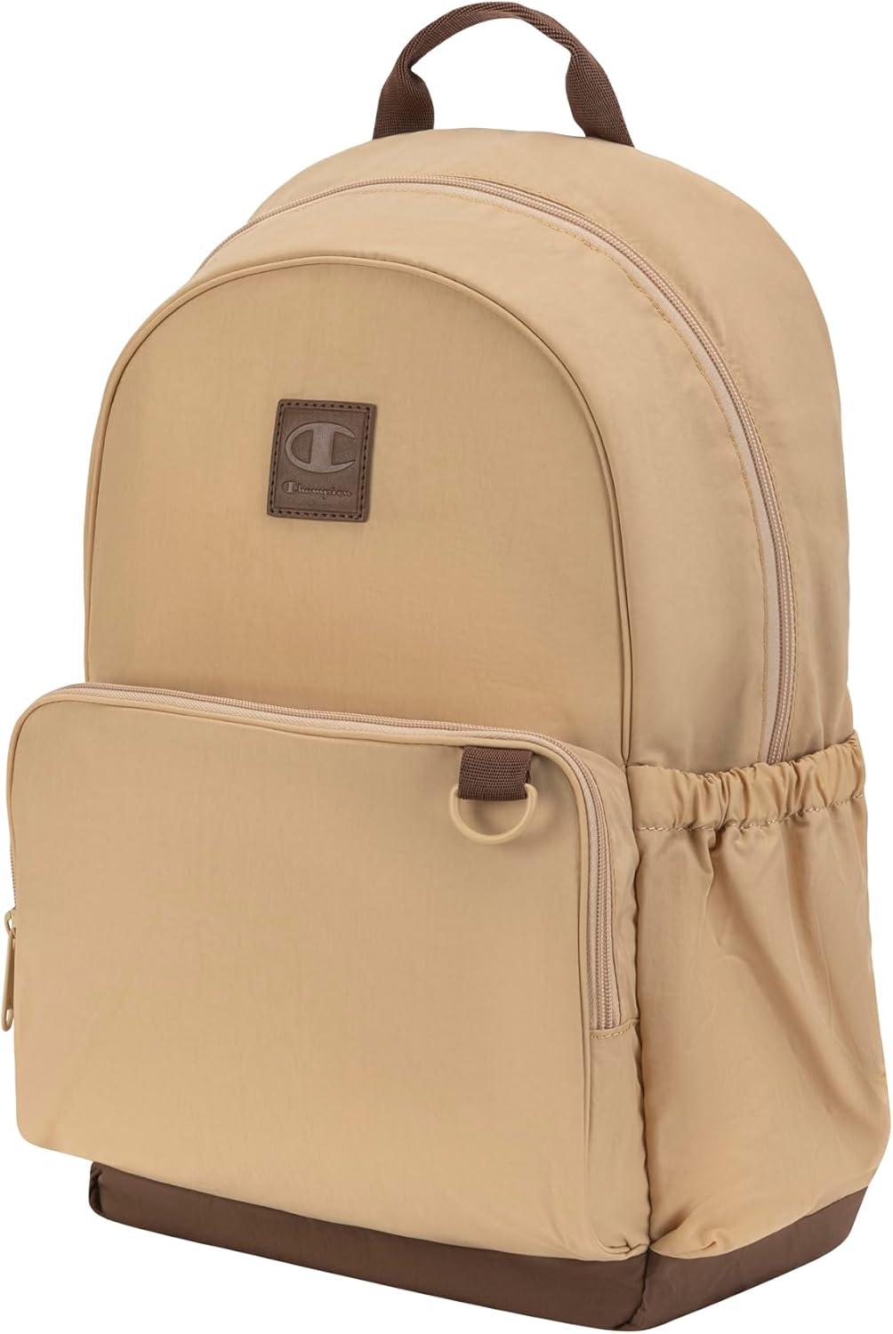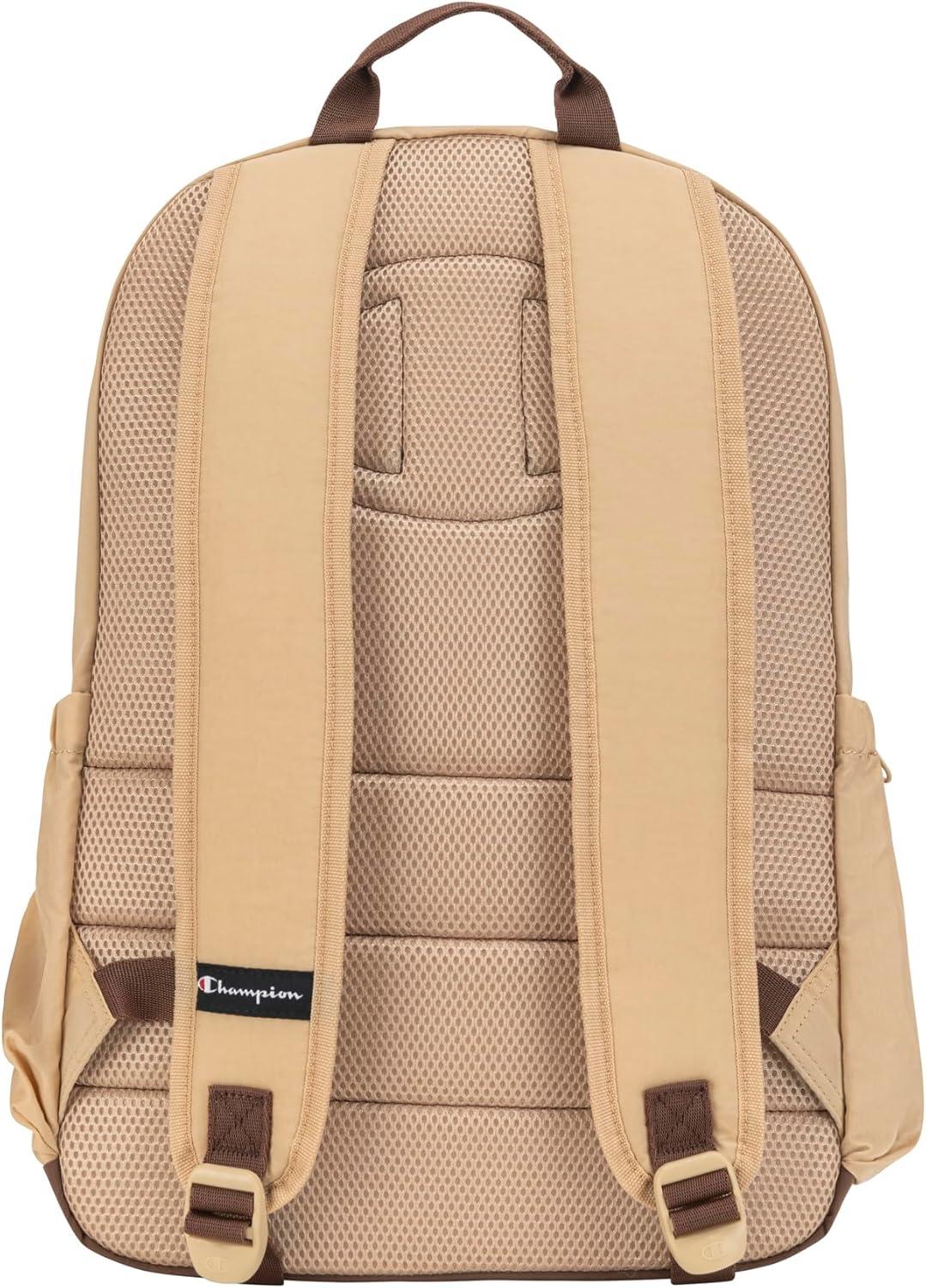 Champion Venice Laptop Backpack in Crinkle Nylon with Padded Adjustable Straps, Water Bottle Pocket for Work, Travel, Commute, Black, Medium(Western Khaki)