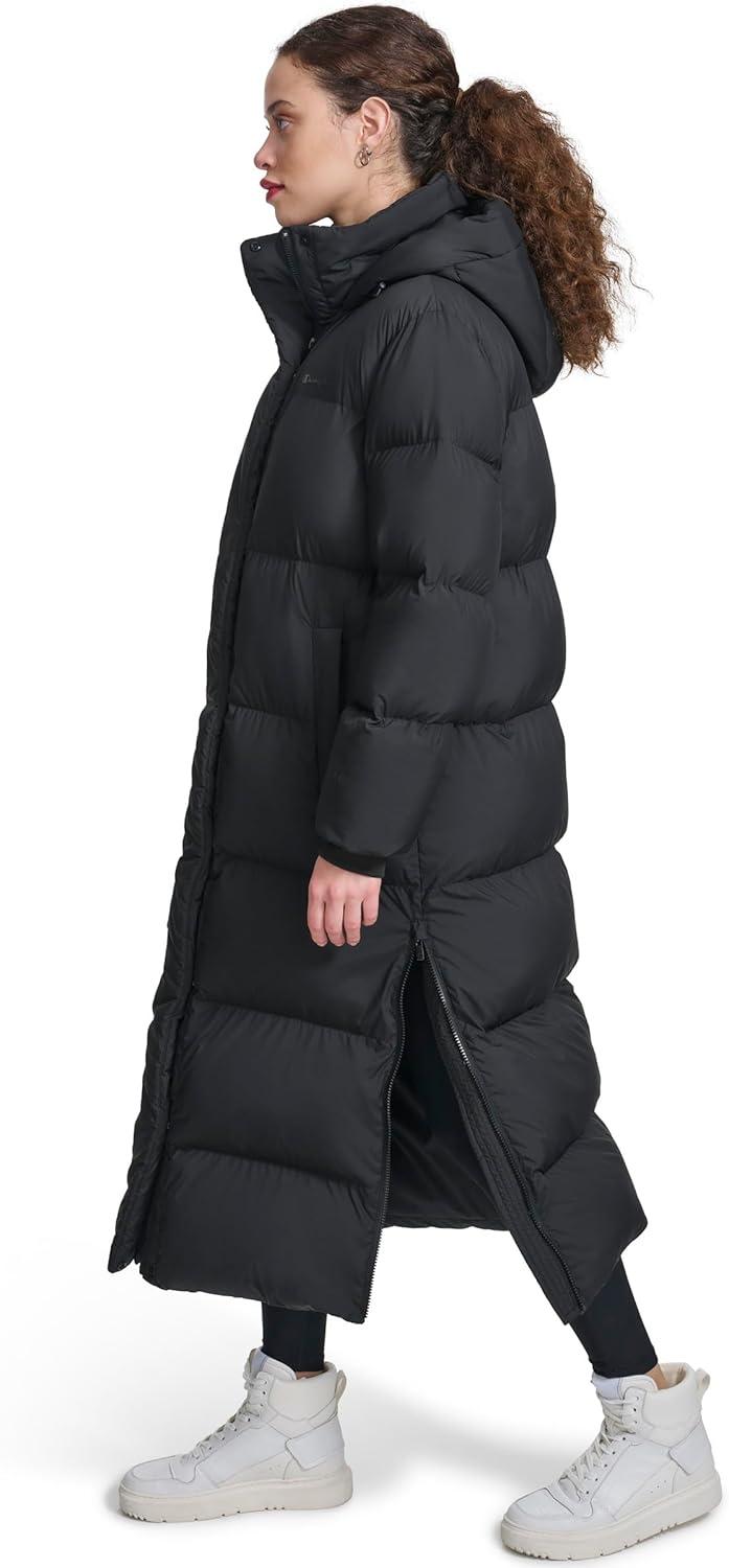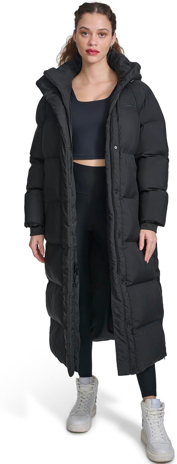 Champion Womens Extra Long Quilted Puffer Jacket With Hood(Black)