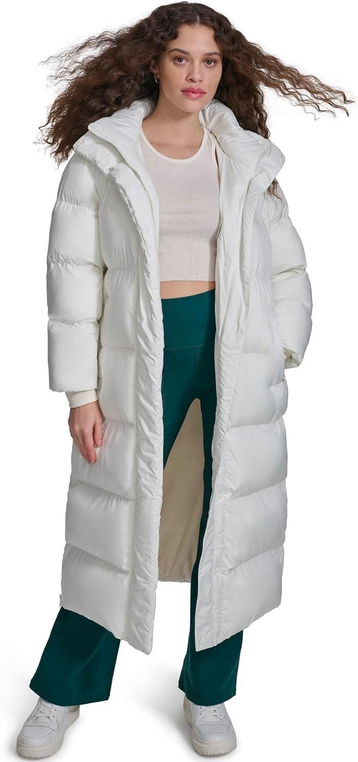 Champion Womens Extra Long Quilted Puffer Jacket With Hood(Marshmallow)