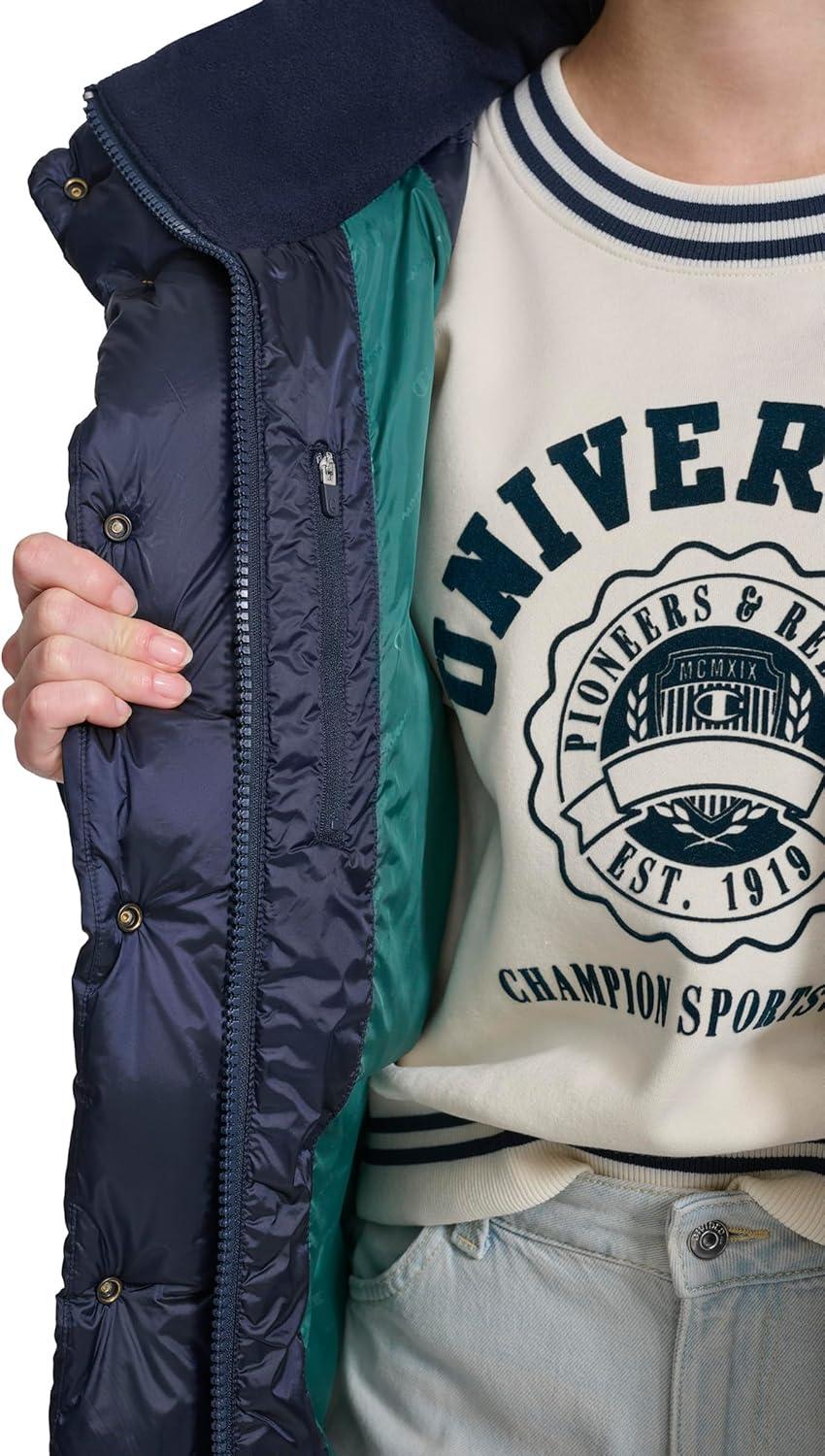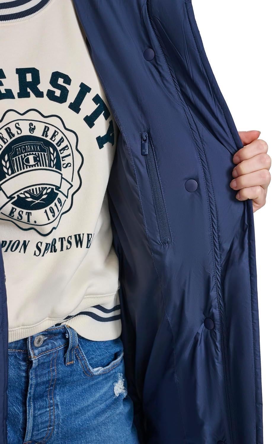 Champion womens Quilted Mid-weight Puffer Jacket With Hood(Navy)