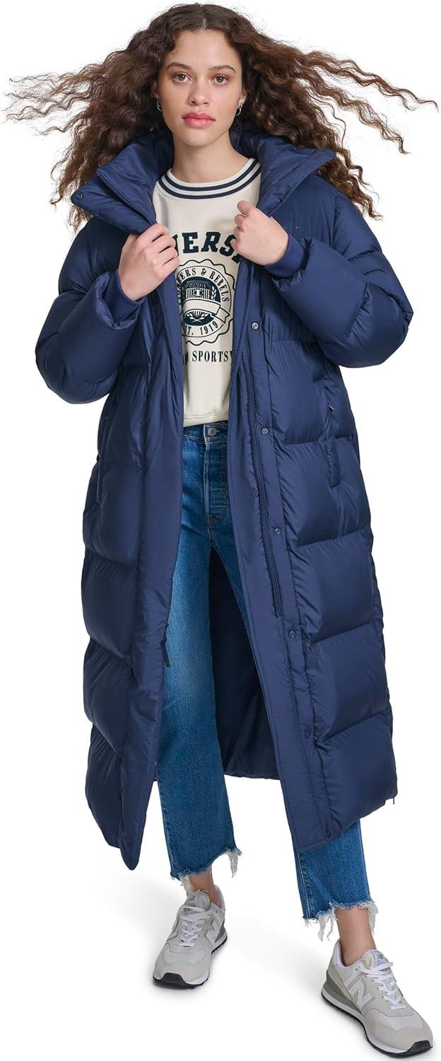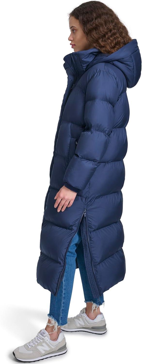 Champion Womens Extra Long Quilted Puffer Jacket With Hood(Navy)