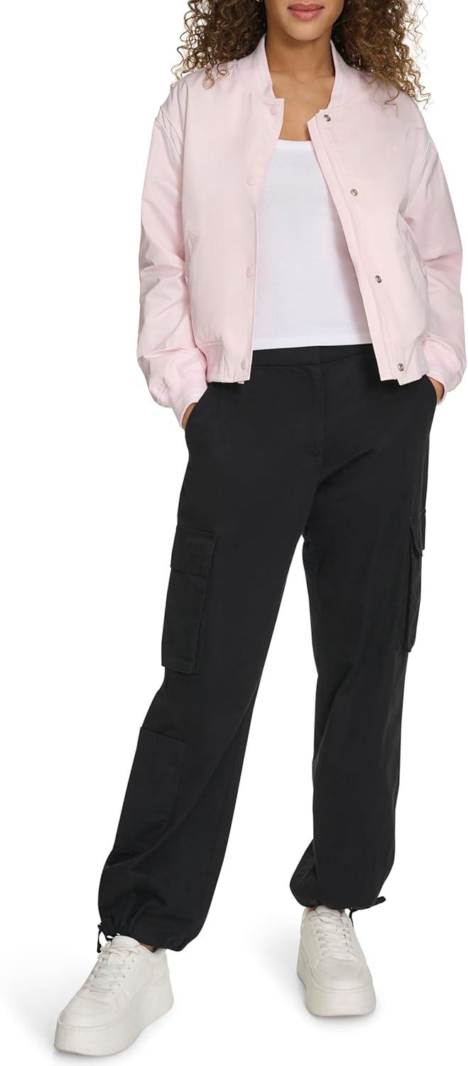 Champion womens Cropped Varsity Bomber Jacket(Light Pink)