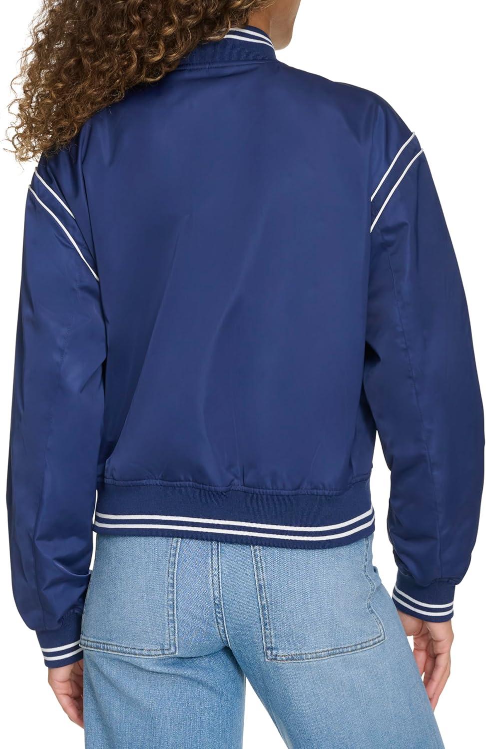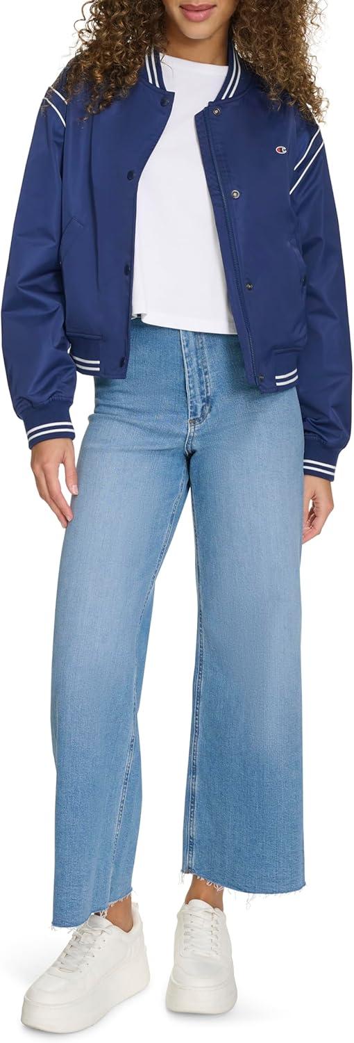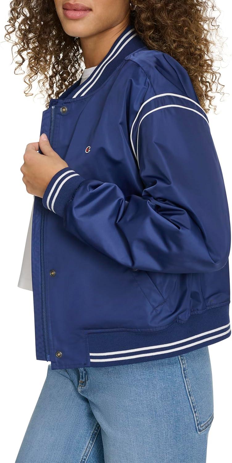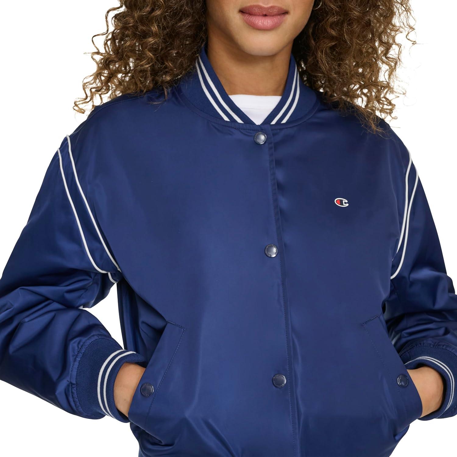 Champion womens Cropped Varsity Bomber Jacket(Medieval Blue)