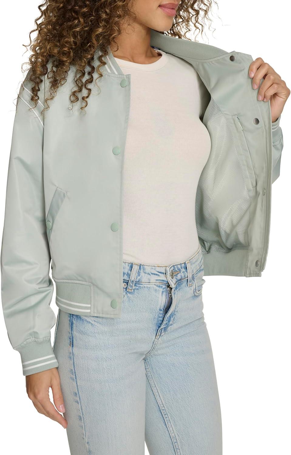 Champion womens Cropped Varsity Bomber Jacket(Sage)