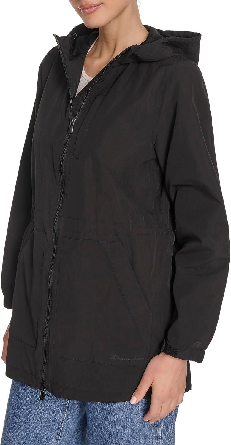 Champion womens Hooded Cinch Waist Rain Jacket(Black)