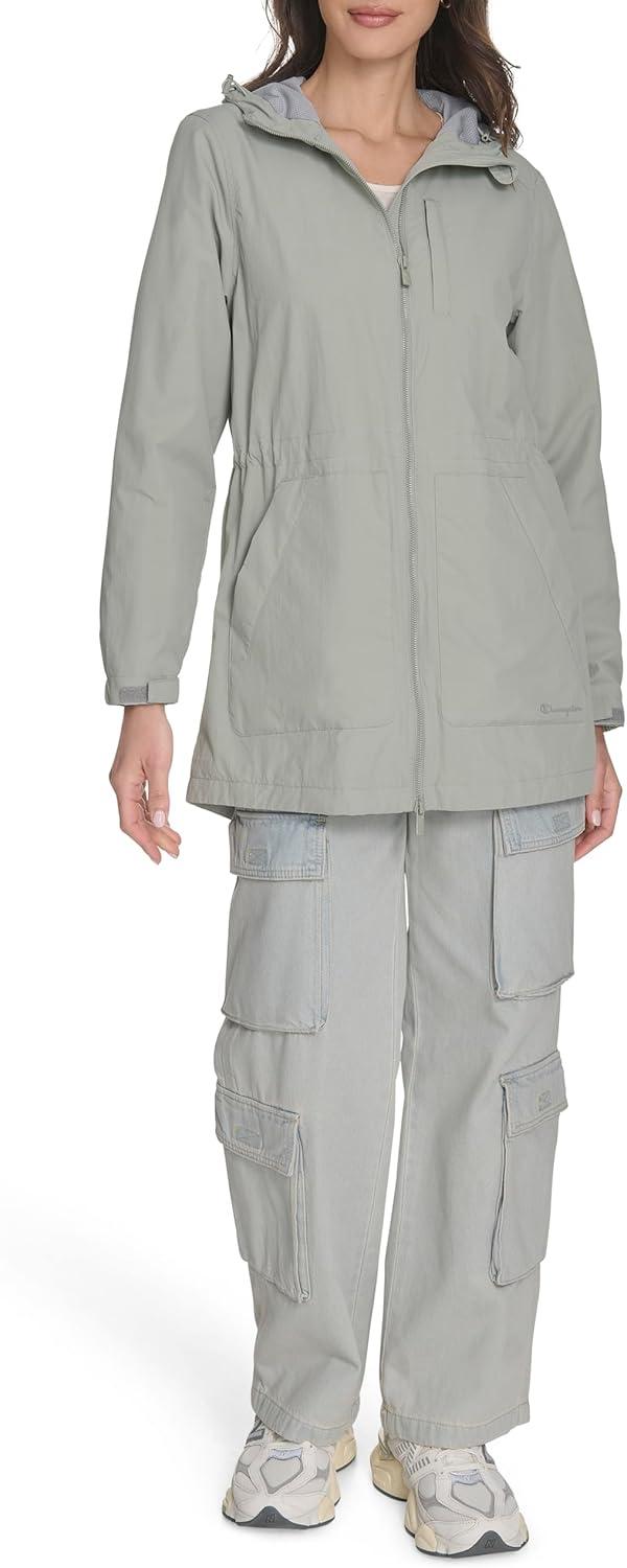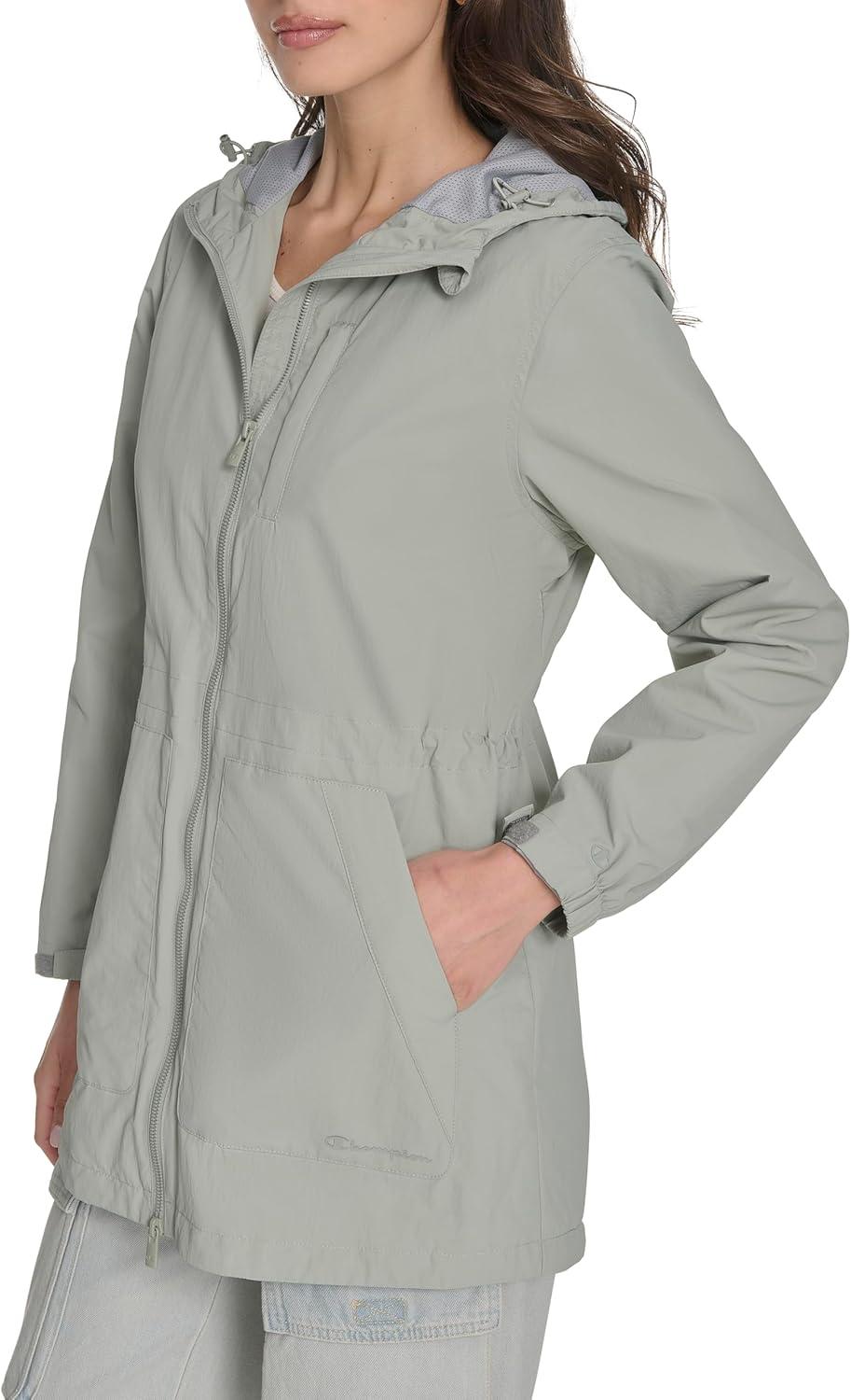 Champion womens Hooded Cinch Waist Rain Jacket(Wrought Iron)