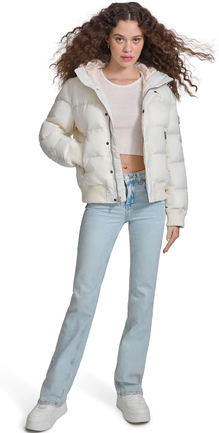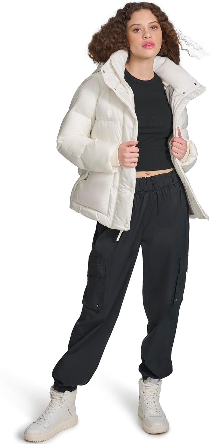 Champion womens Quilted Snorkel Puffer Jacket With Hood(Marshmallow)