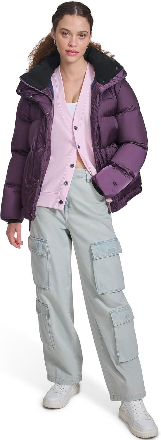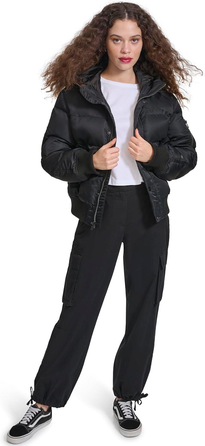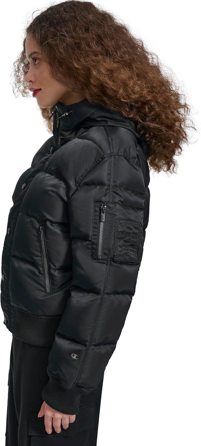 Champion womens Quilted Snorkel Puffer Jacket With Hood(Black)