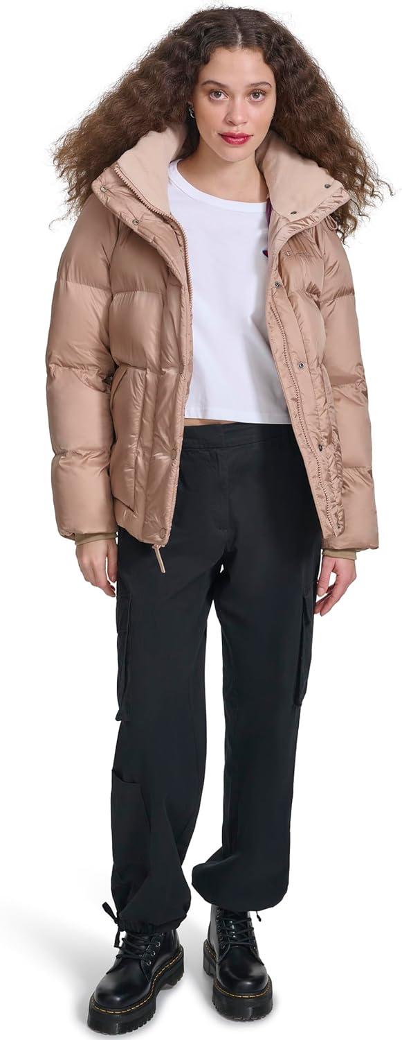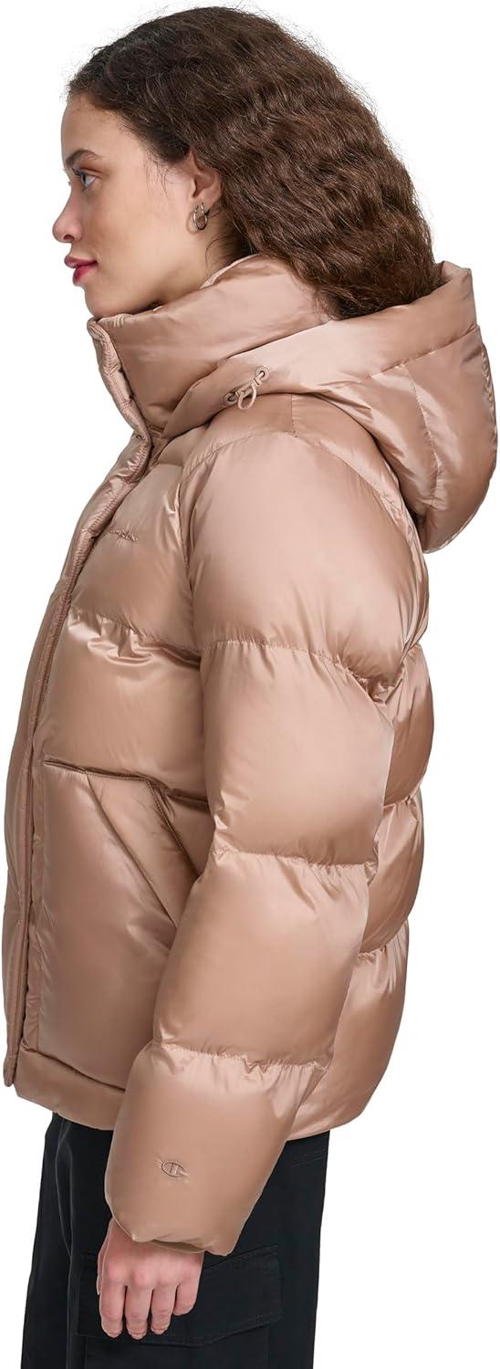 Champion womens Quilted Mid-weight Puffer Jacket With Hood(Warm Taupe)