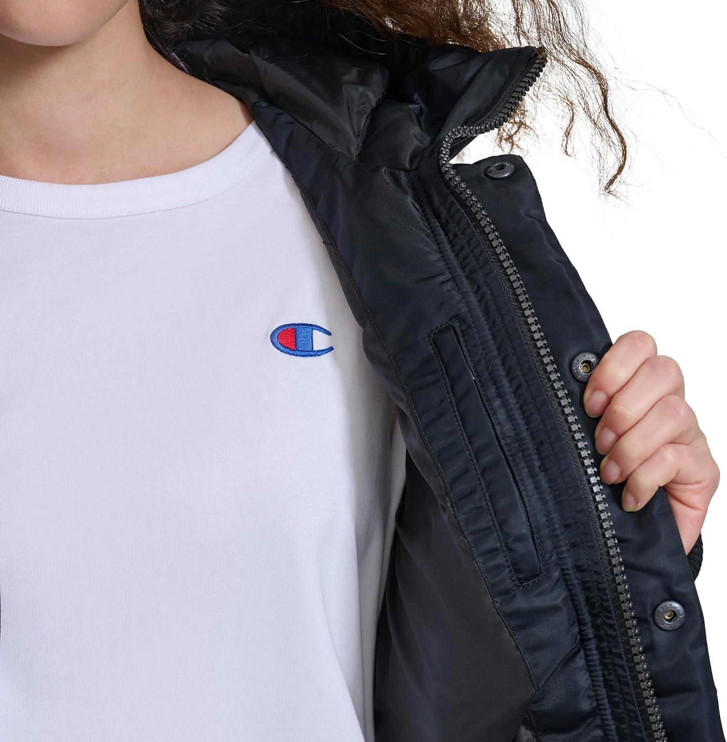 Champion womens Quilted Mid-weight Puffer Jacket With Hood(Black)