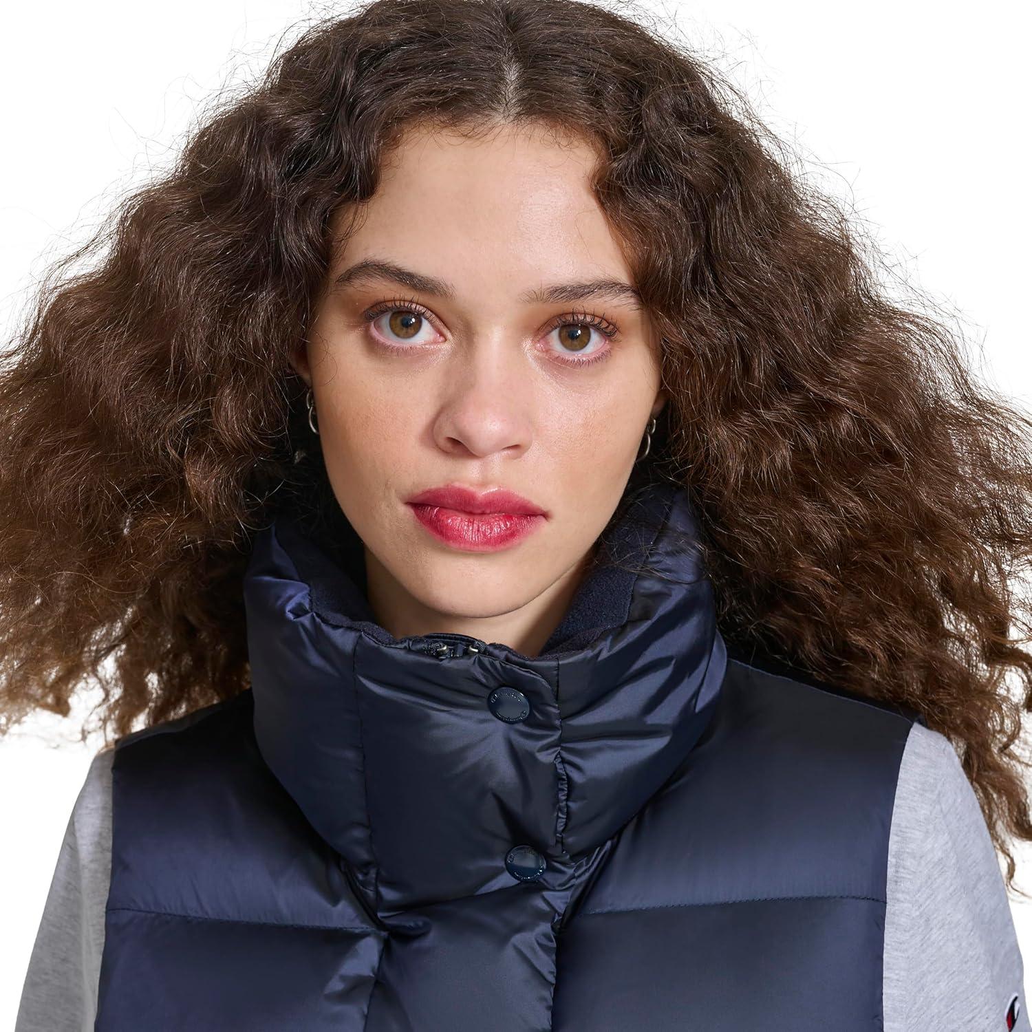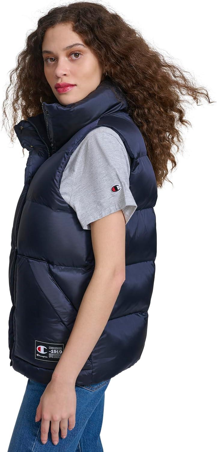 • Champion womens Satin Quilted Puffer Vest With Stand Collar(Navy)
