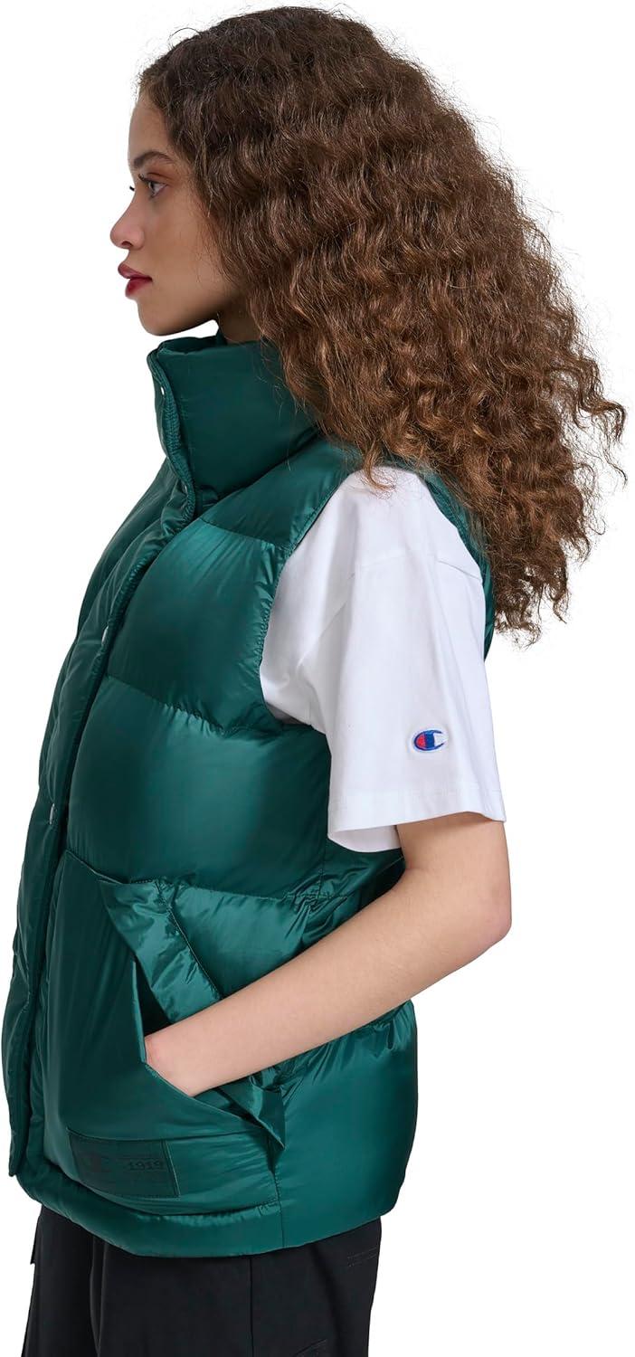 • Champion womens Satin Quilted Puffer Vest With Stand Collar(Rainforest)