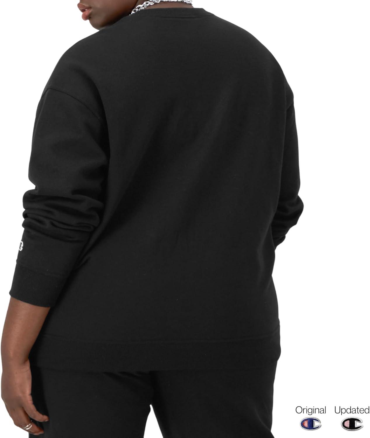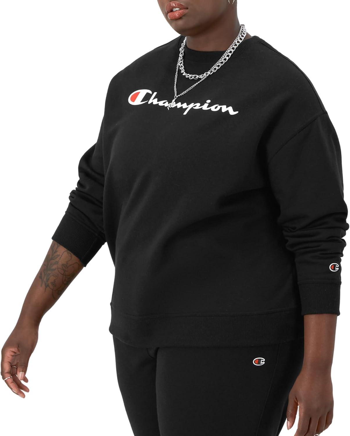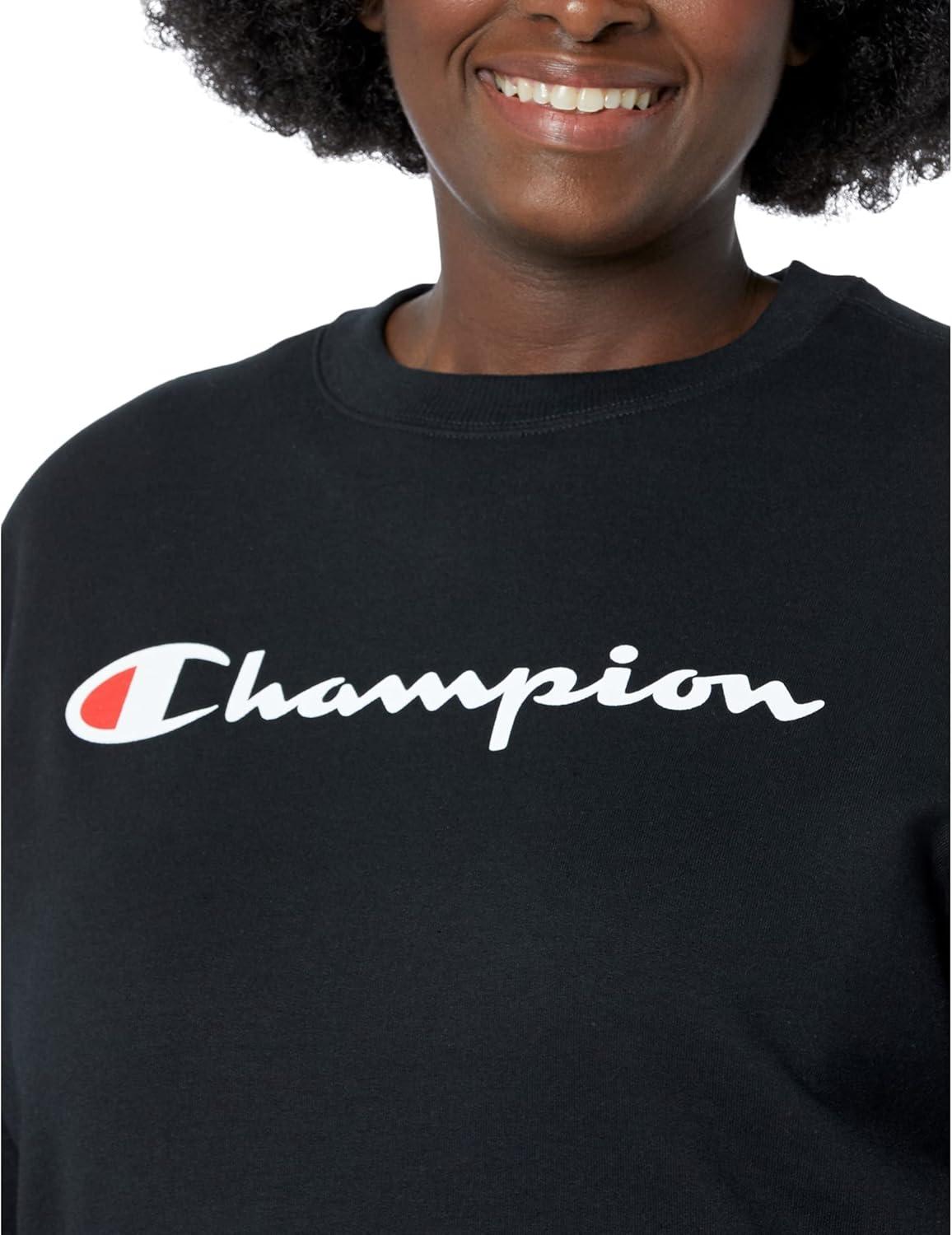 Champion Women’s Sweatshirt, Fleece, Crewneck Sweatshirt, Warm Sweatshirt for Women (Plus Size Available)(Black – Classic Script Logo)