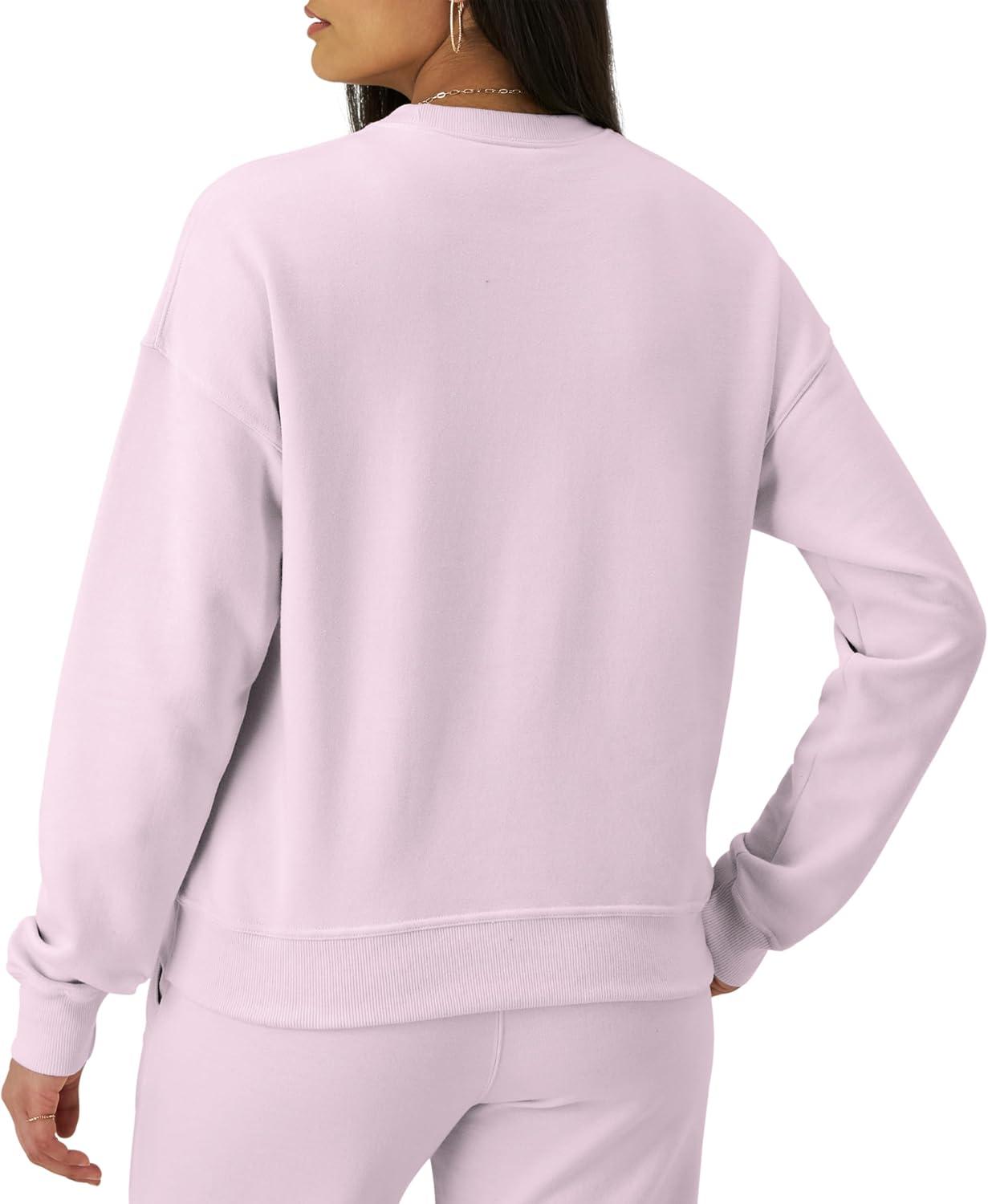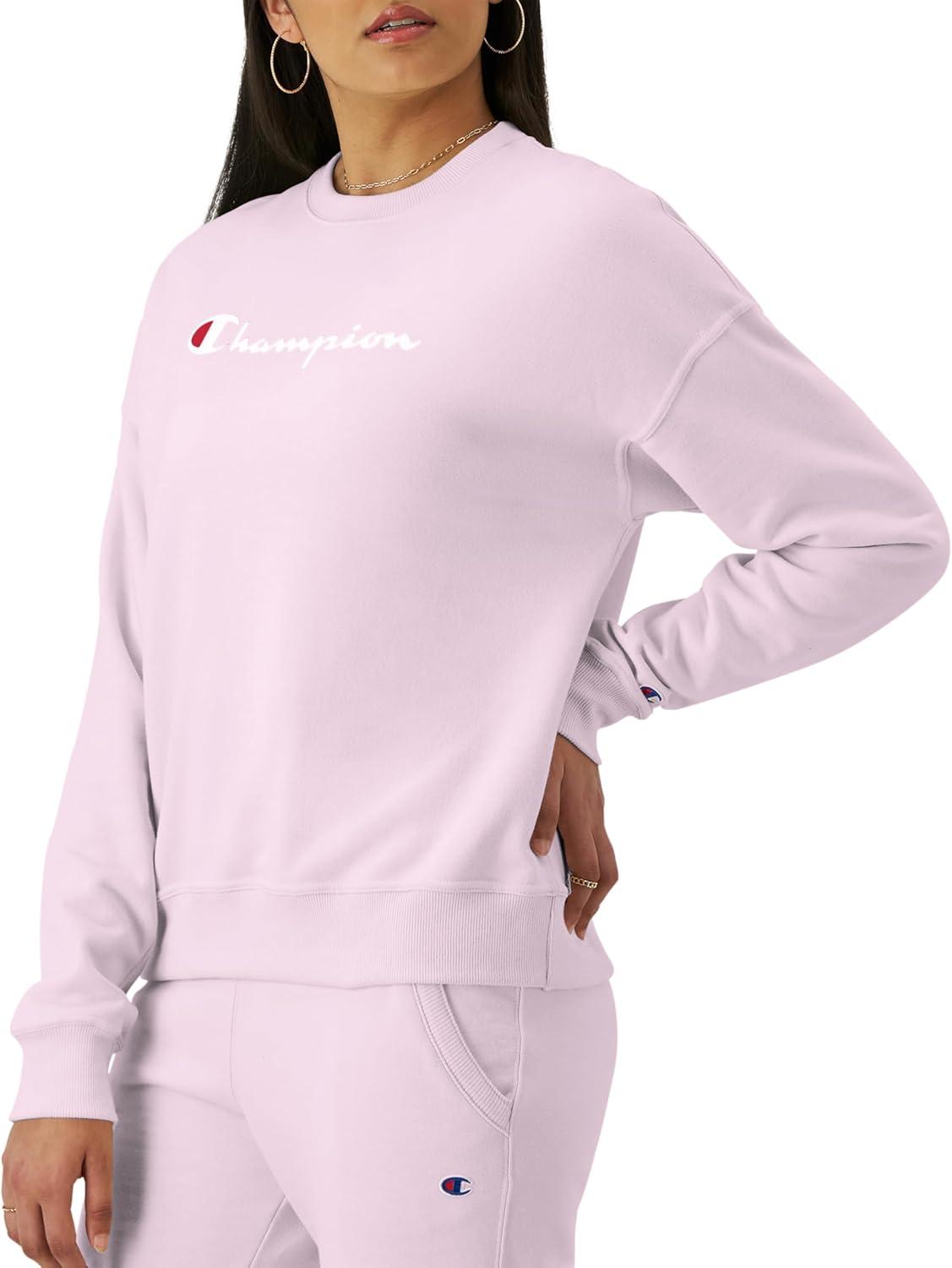 Champion Women’s Sweatshirt, Fleece, Crewneck Sweatshirt, Warm Sweatshirt for Women (Plus Size Available)(Chantilly Pink Script)
