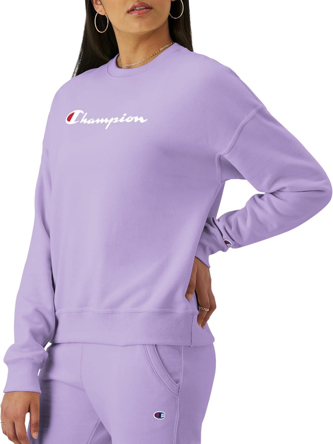 Champion Women’s Sweatshirt, Fleece, Crewneck Sweatshirt, Warm Sweatshirt for Women (Plus Size Available)(Lavish Lavender Script)