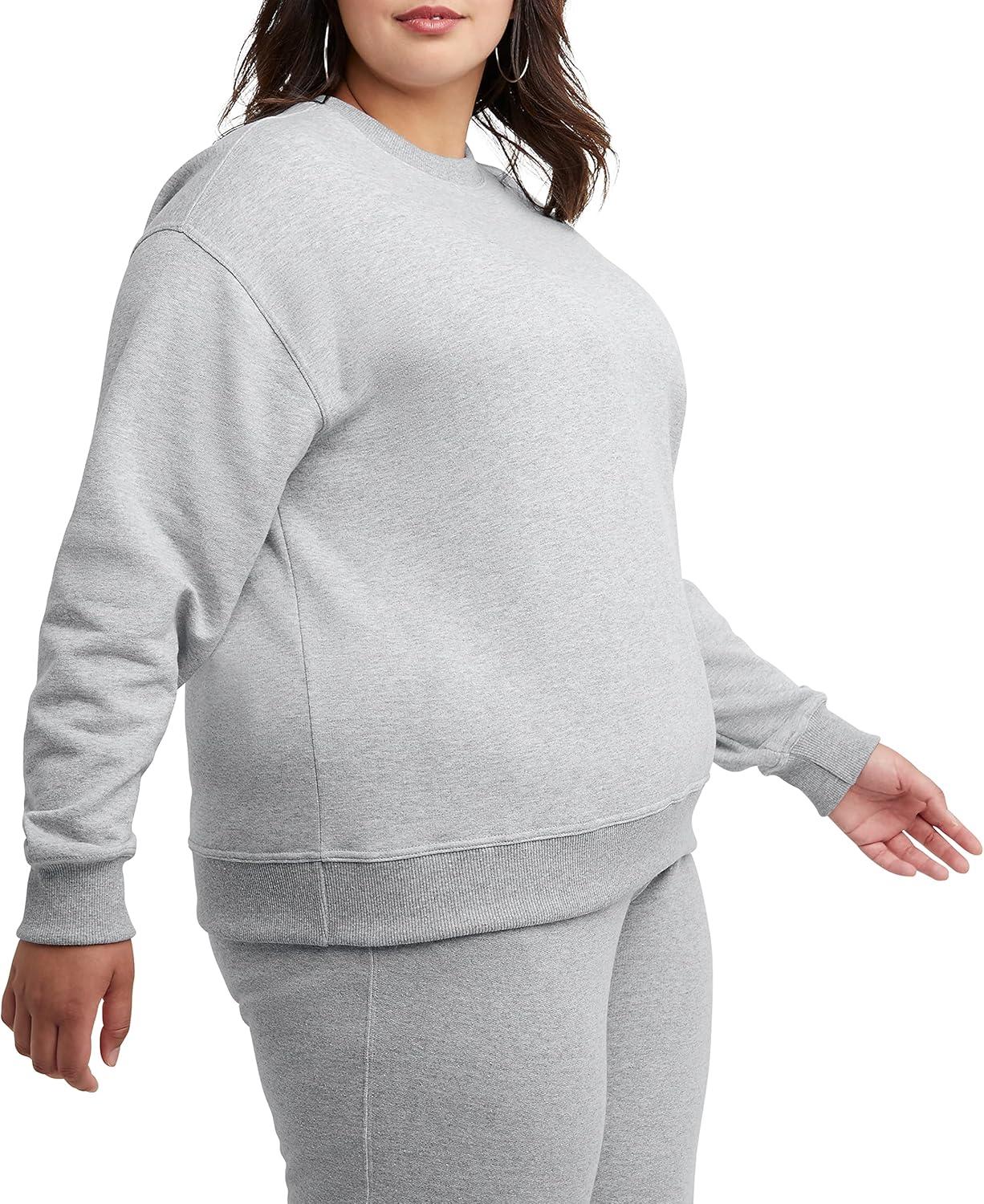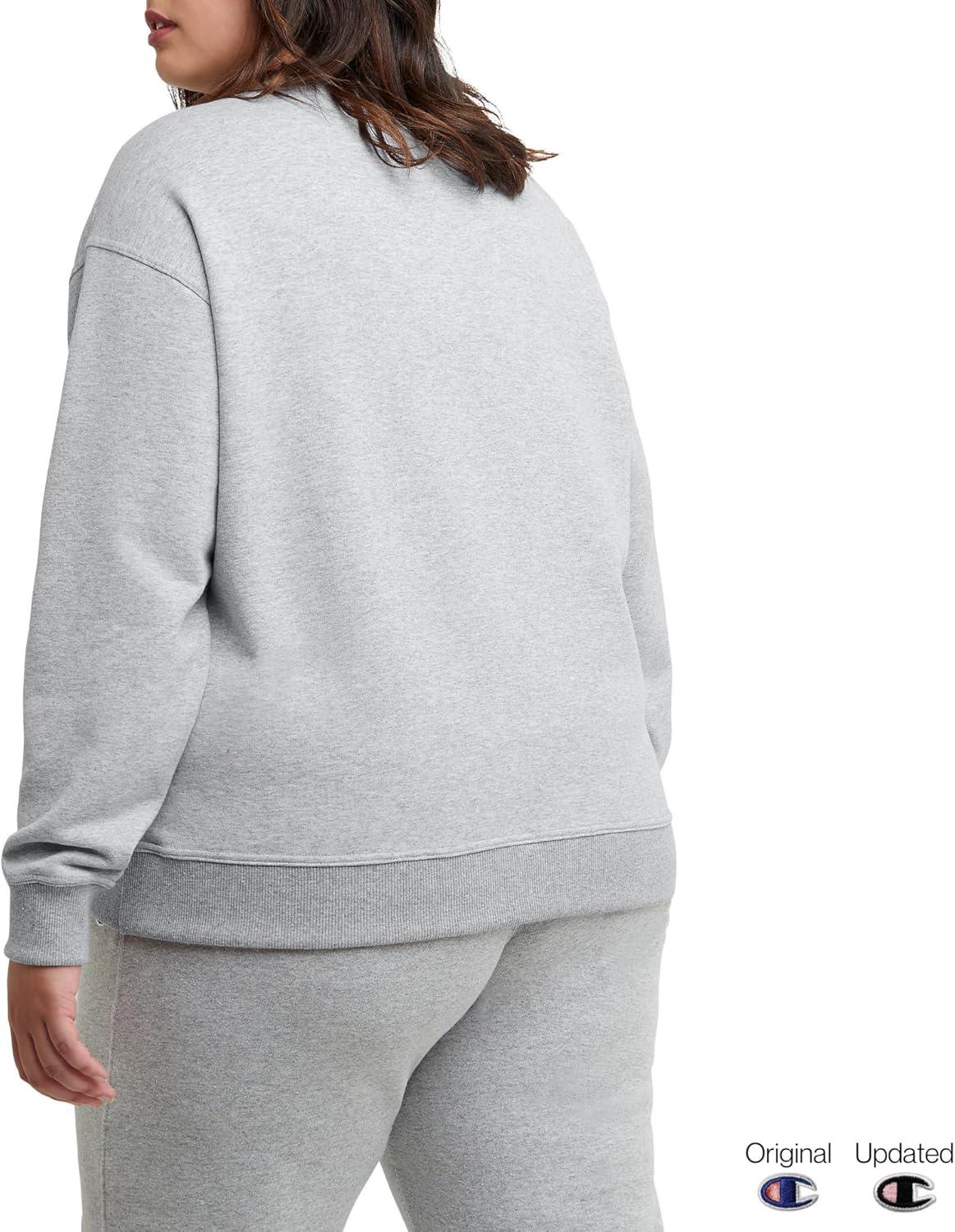 Champion Women’s Sweatshirt, Fleece, Crewneck Sweatshirt, Warm Sweatshirt for Women (Plus Size Available)(Oxford Gray – Classic Script Logo)