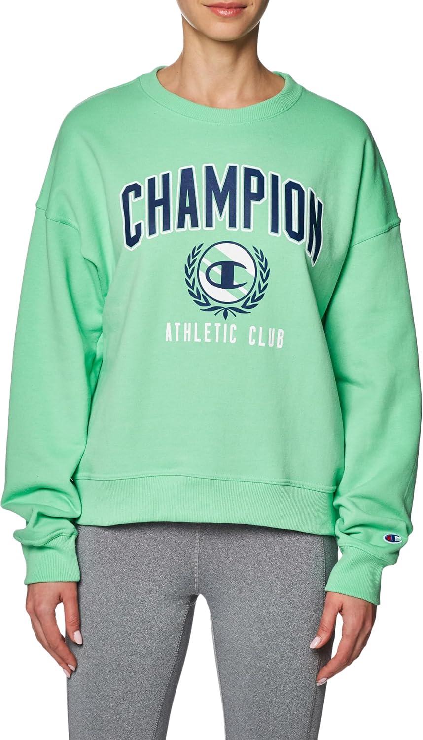 Champion Women’s Sweatshirt, Fleece, Crewneck Sweatshirt, Warm Sweatshirt for Women (Plus Size Available)(Spring Green Champion Athletic Club)