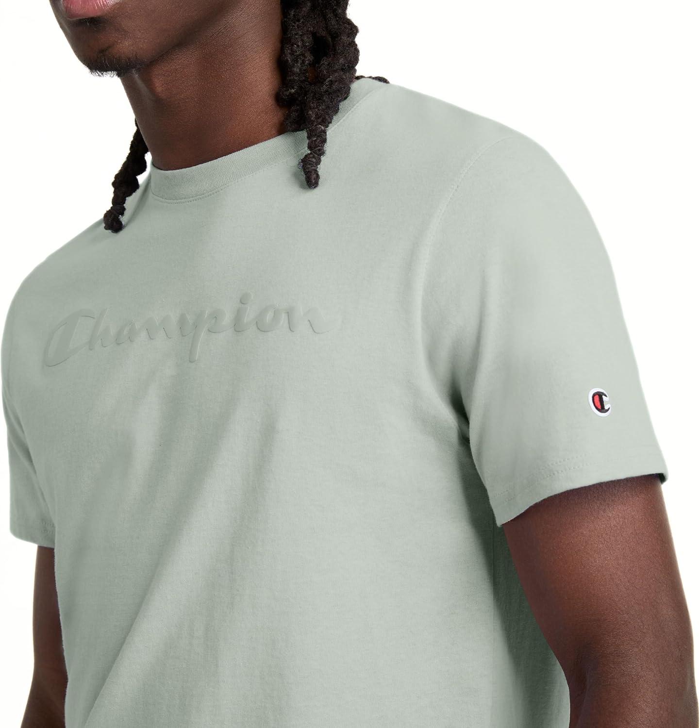 Champion Men’s Heritage Short Sleeve Tee, Men’s T-Shirts, Vintage Shirts, Men’s Tee Shirts, Graphics(Clever Sage – Tonal Script Logo)