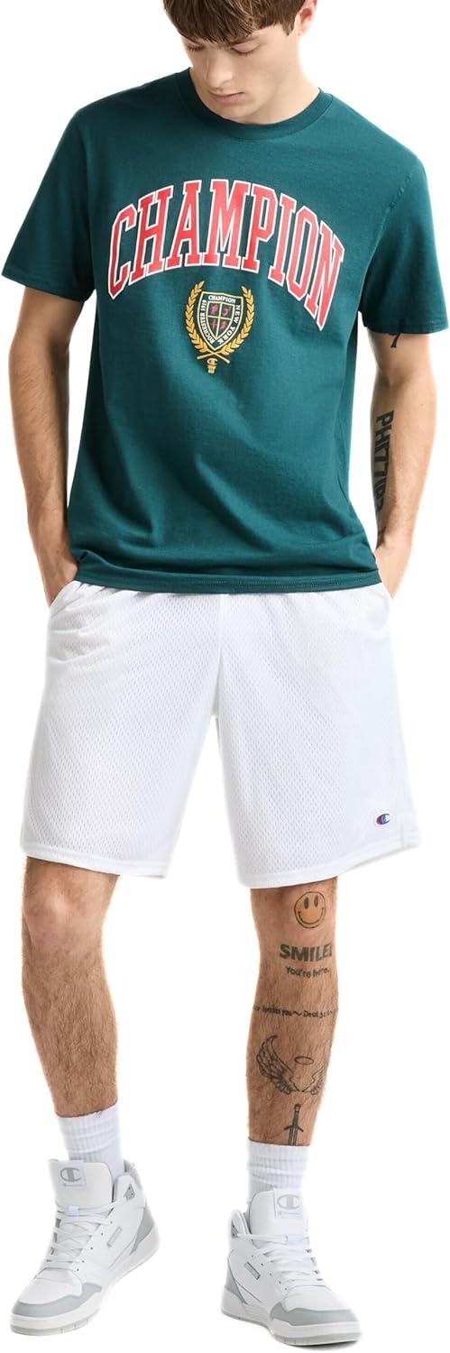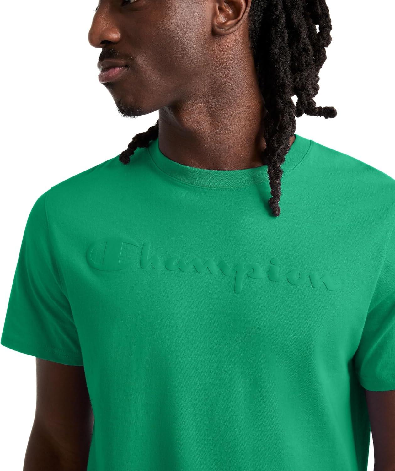 Champion Men’s Heritage Short Sleeve Tee, Men’s T-Shirts, Vintage Shirts, Men’s Tee Shirts, Graphics(Green Field – Tonal Script Logo)