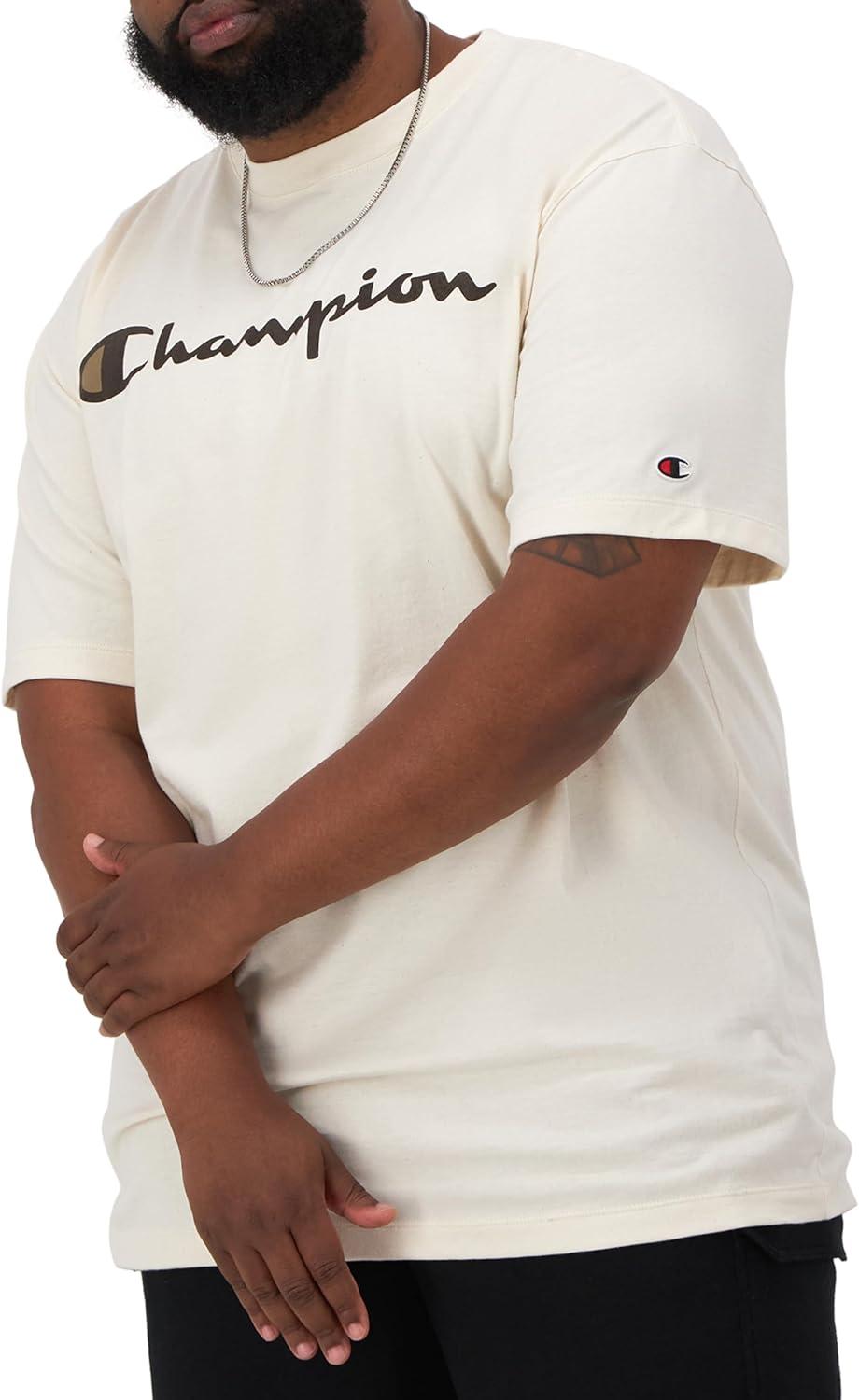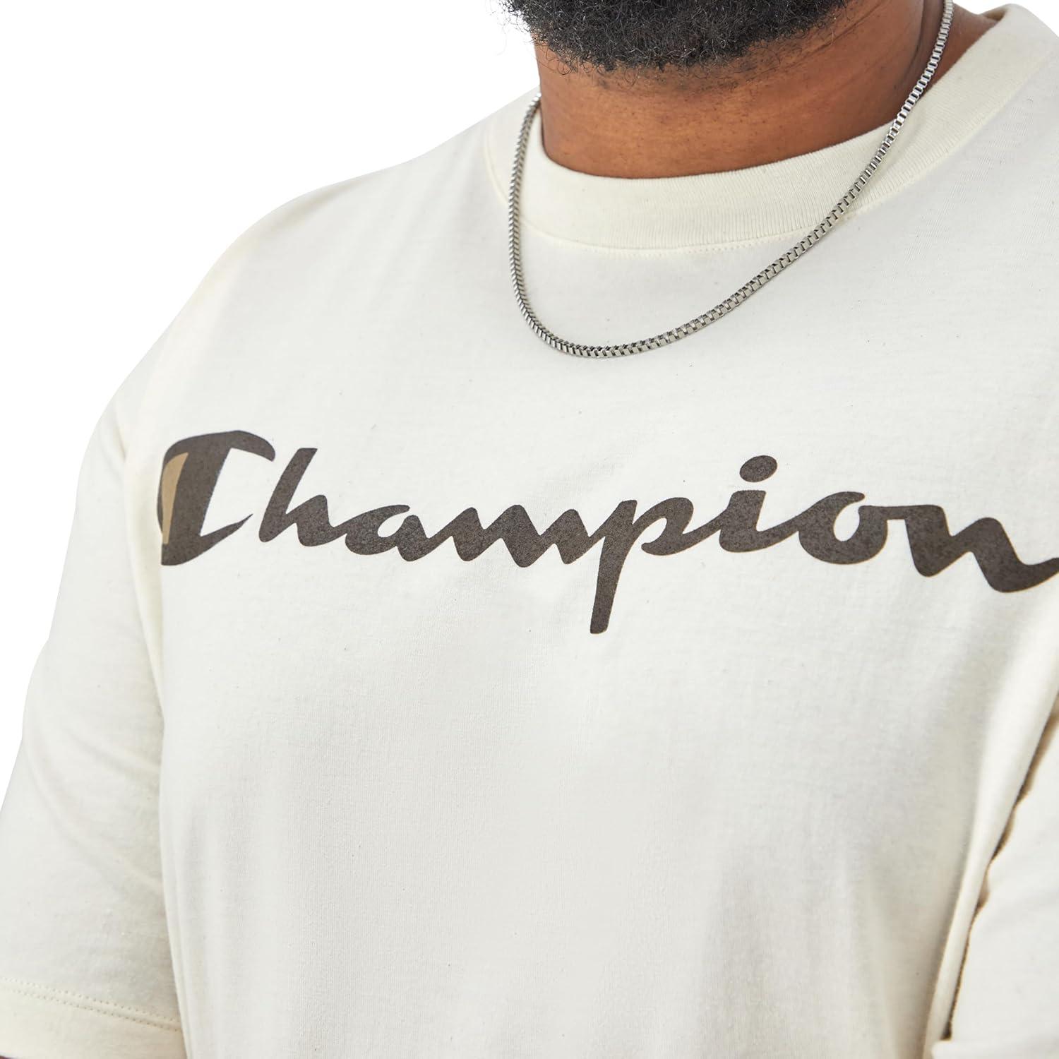 Champion Men’s Heritage Short Sleeve Tee, Men’s T-Shirts, Vintage Shirts, Men’s Tee Shirts, Graphics(Natural – Classic Script Logo)