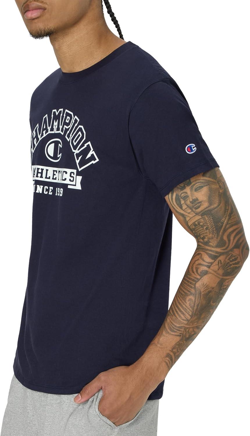 Champion Men’s Heritage Short Sleeve Tee, Men’s T-Shirts, Vintage Shirts, Men’s Tee Shirts, Graphics(Navy – Champion Athletics)