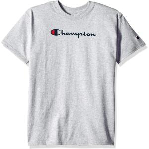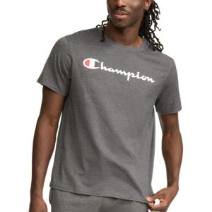 Champion Men’s Heritage Short Sleeve Tee, Men’s T-Shirts, Vintage Shirts, Men’s Tee Shirts, Graphics(Granite Heather – Classic Script Logo)