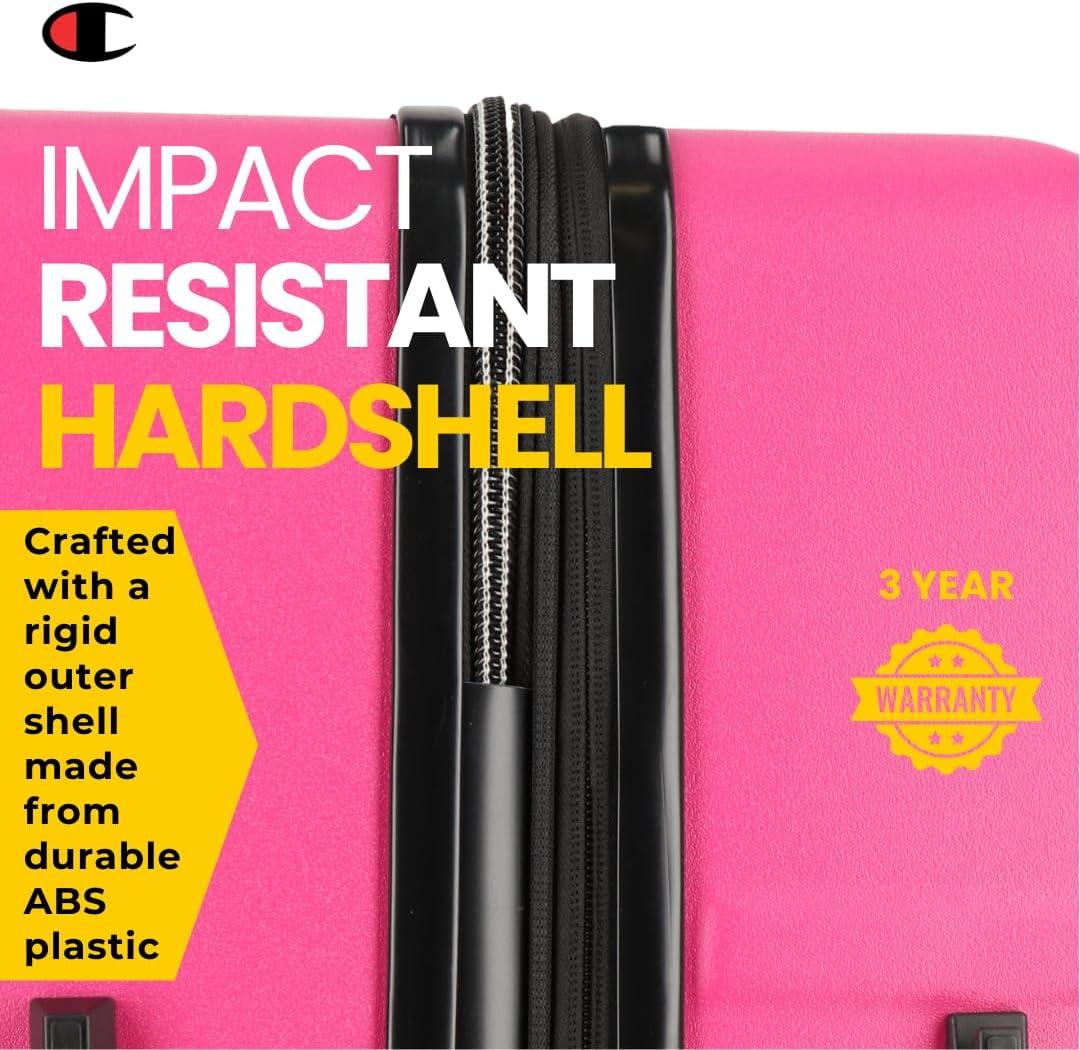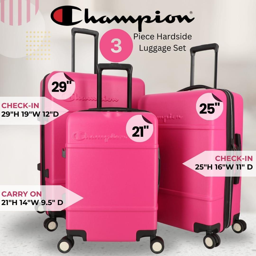 Champion 3-Piece Luggage Set – 21” 25” 29” Hardshell Suitcases with 8 Spinner Wheels – Expandable Carry-On & Checked Luggage – Durable ABS Material – Travel Bags – Airline Approved – Chive(Very Berry)