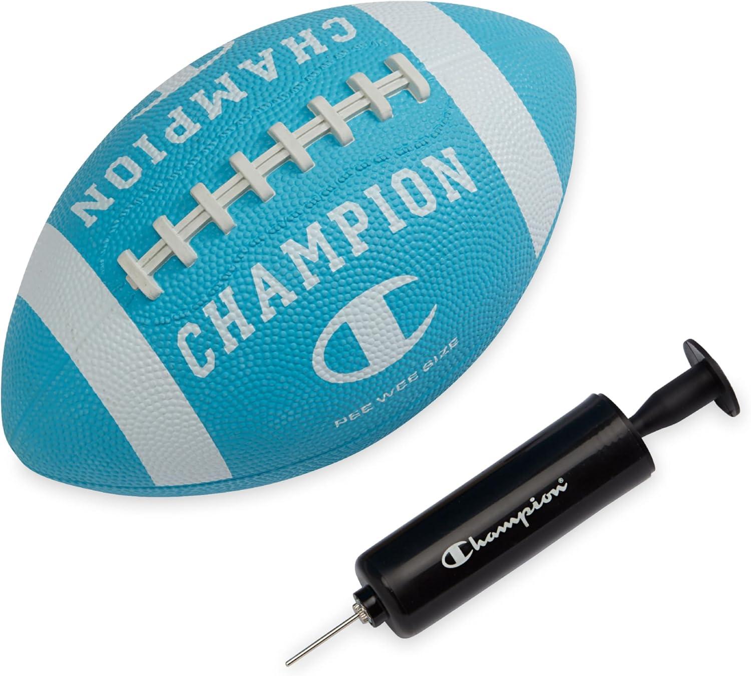 Champion Blitz Football, All-Weather Football, Enhanced Grip, Durable Rubber Cover and Molded Laces, for Outdoor Sports & Training, Includes 6 Ball Pump(Fierce Tide/White)