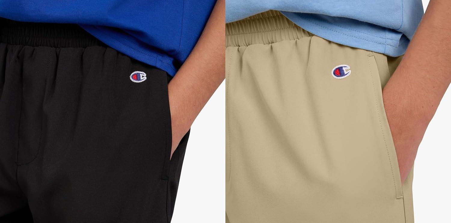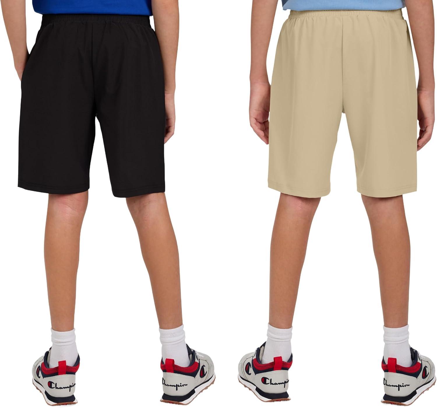 Champion Boys Shorts for Kids Athletic 2 Pack Lightweight Hybrid Short(Khaki-black)