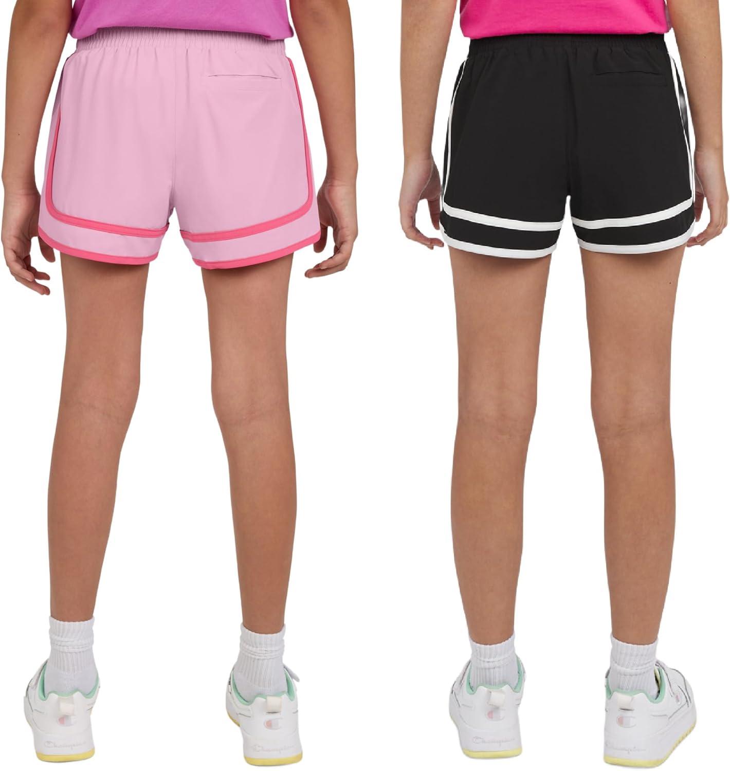 Champion Girls Heritage Foldover Mesh Running Basketball Short 2.75 Inch Inseam(Black-bright Pink)