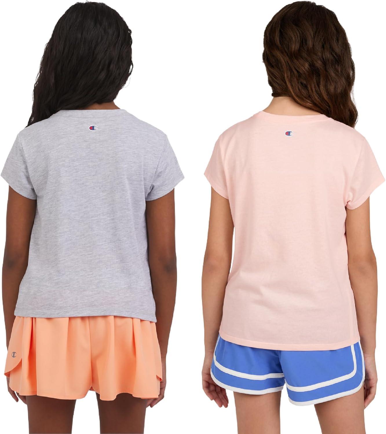 Champion Girls Tee Shirt for Kids Short Sleeve T-Shirt Girls Tops(Pink Mist-grey Heather)