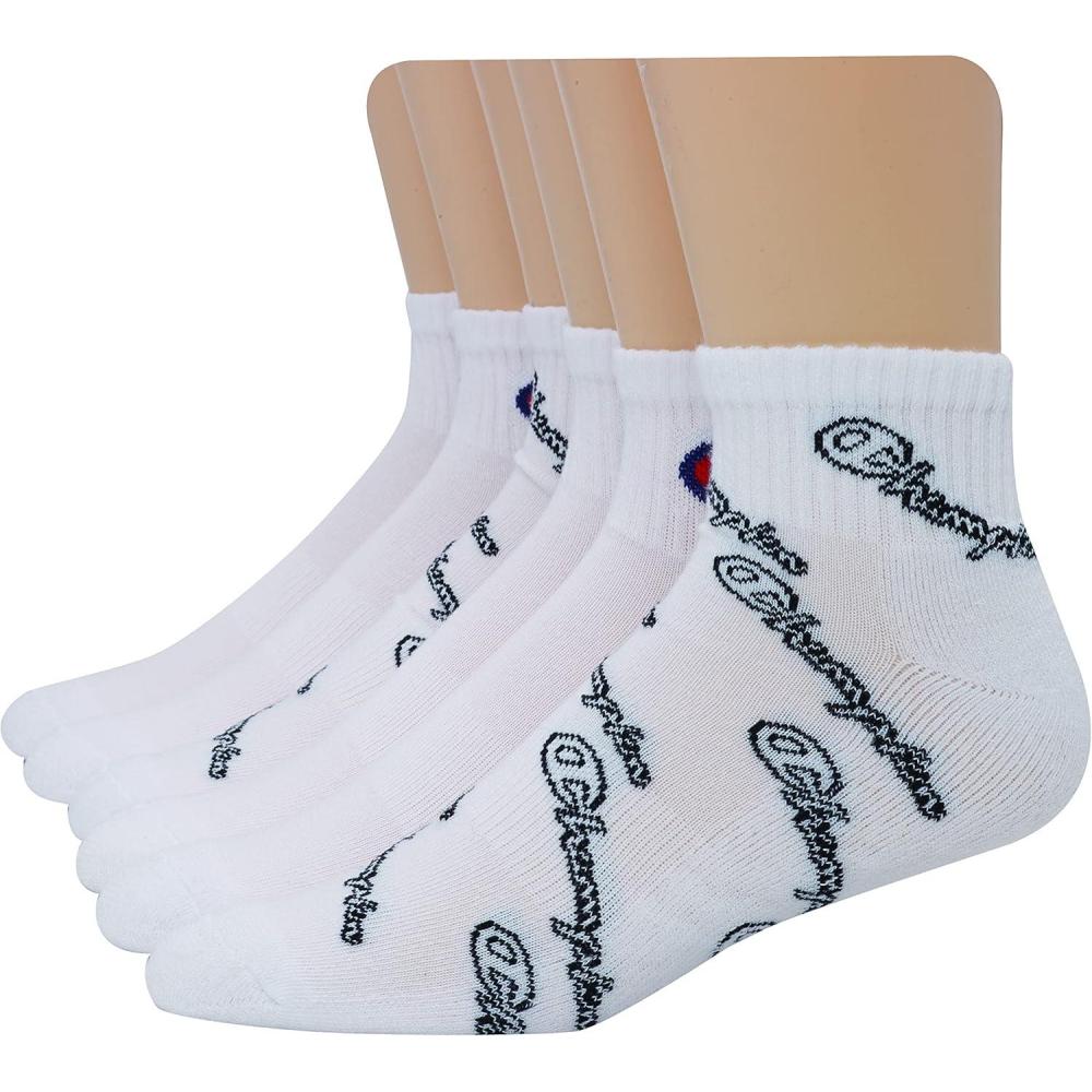 Champion Men’s Ankle Socks (6-Pack)(White With All Over Script – 6 Pack)