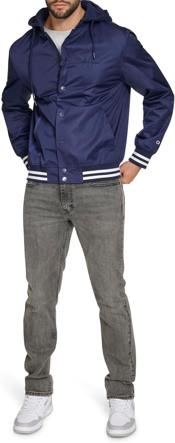 Champion mens Champion Men’s Lightweight Varsity Jacket With Jersey Hood(Peacoat)