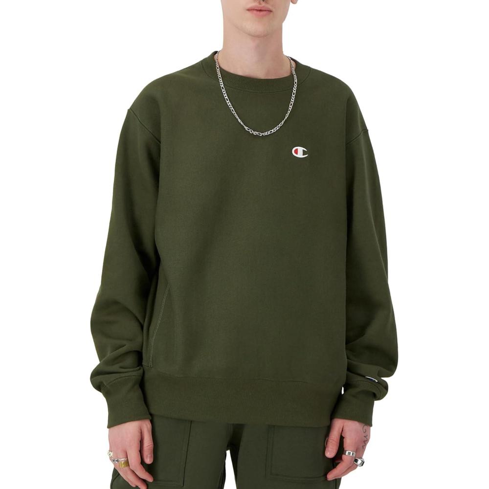 Champion mens Crewneck Sweatshirt, Reverse Weave, Heavyweight Fleece Sweatshirt for Men(Acadia Green Left Chest C)