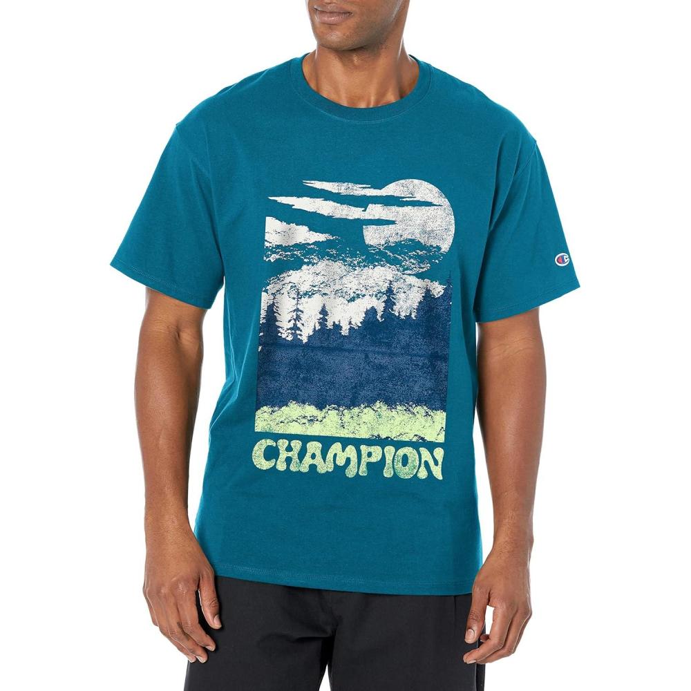 3. Champion Men’s Heritage Short Sleeve Tee, Men’s T-Shirts, Vintage Shirts, Men’s Tee Shirts, Graphics(Nifty Turquoise Tree Graphic)