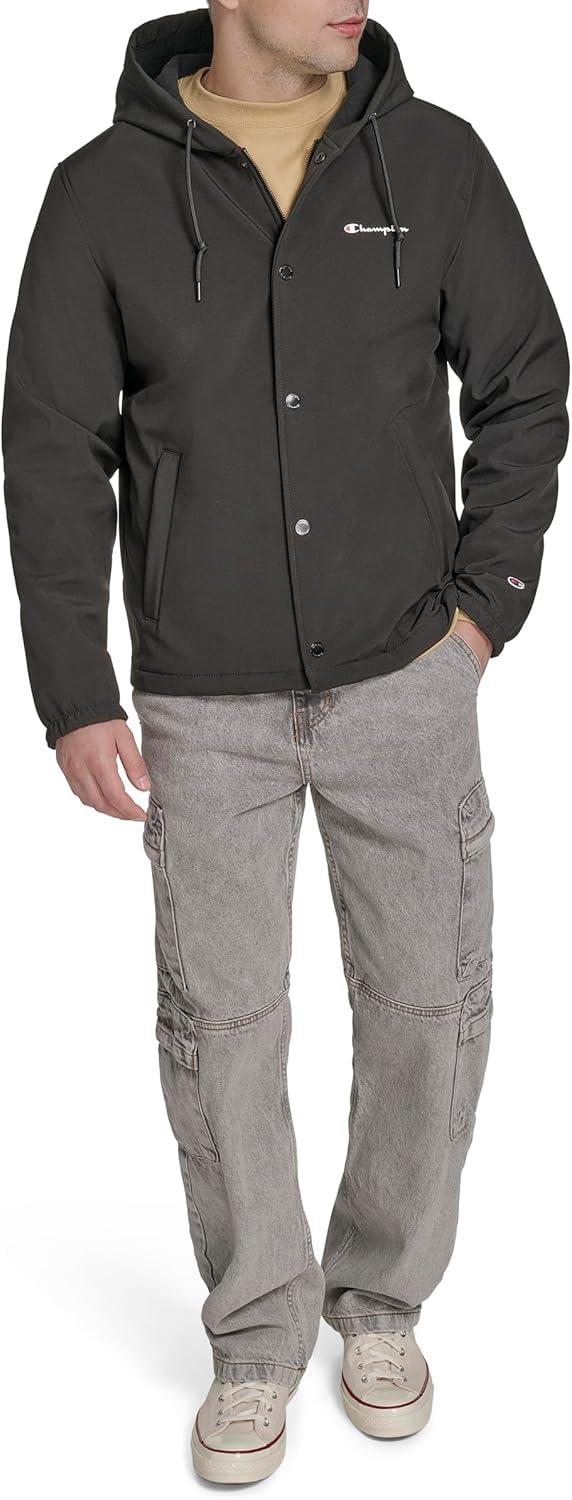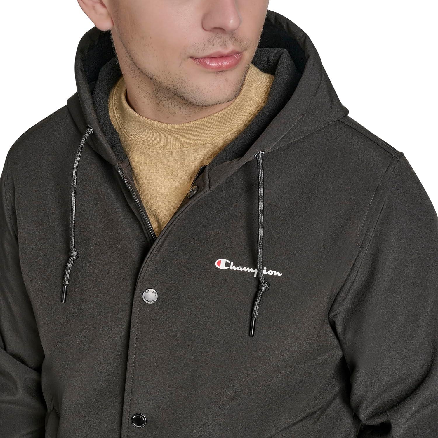 Champion mens Hooded Coaches Rain Jacket(Black Soft Shell)