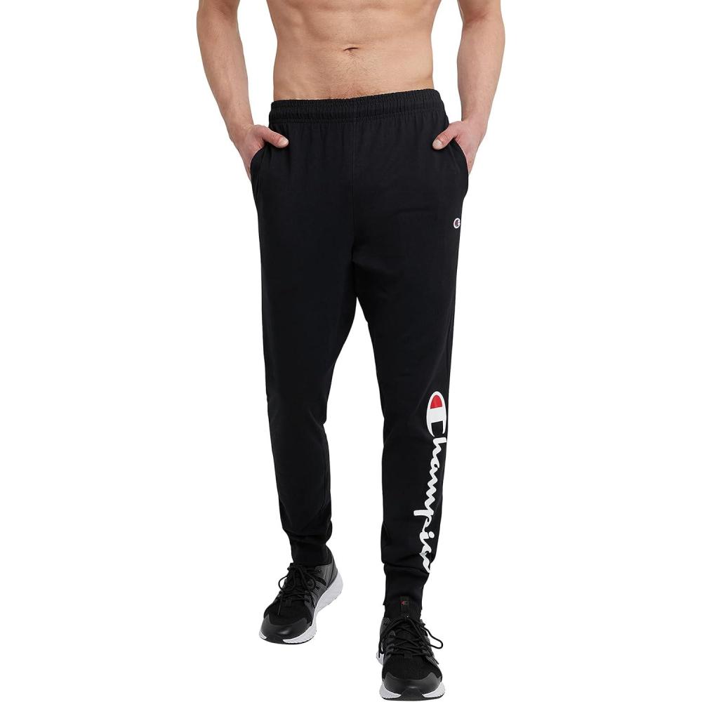 Champion Men’s Joggers, Everyday Cotton, Lightweight Lounge Knit Pants for Men, 31″(Black – Classic Script Logo)