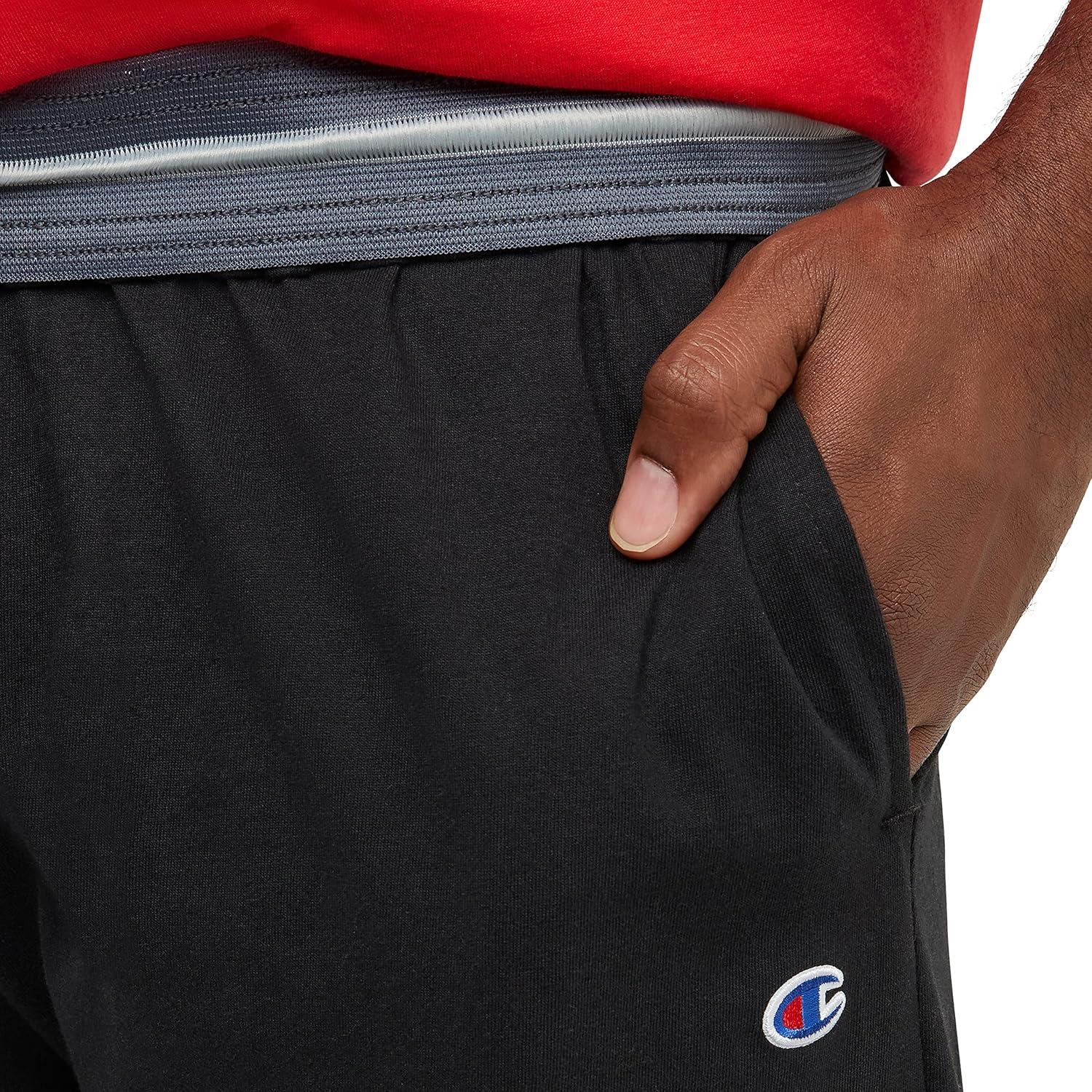 CLASSIC CHAMPION STYLE. These men’s open-hem lounge pants deliver ultimate lightweight comfort and are as soft as your favorite jersey knit t-shirt. Made for everyday at-home wear, their minimalist design features a stretch waistband with drawcord closure for a customizable fit. Convenient side pockets are the perfect place to store your phone, wallet, and more, while the open hem completes the laid-back look. These men’s lounge pants are finished with a Champion C logo patch at the left hip and are ready to be paired with your favorite tee or hoodie for an effortlessly cool 'fit.