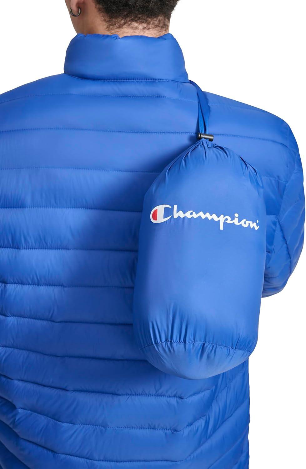 Champion mens Lightweight Packable Puffer Jacket(Blue)