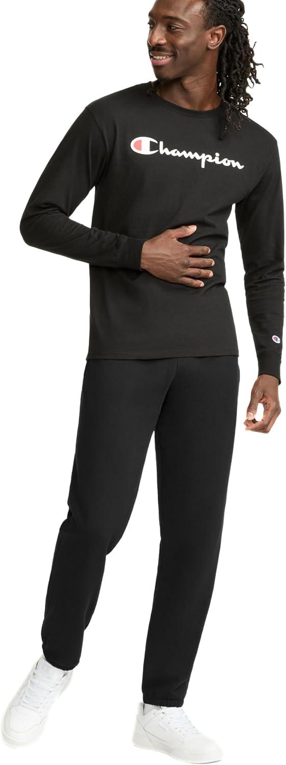 3. Champion Men’s Long Sleeve T-shirt, Classic T-shirt for Men (Reg. Or Big & Tall)(Black – Classic Script Logo)