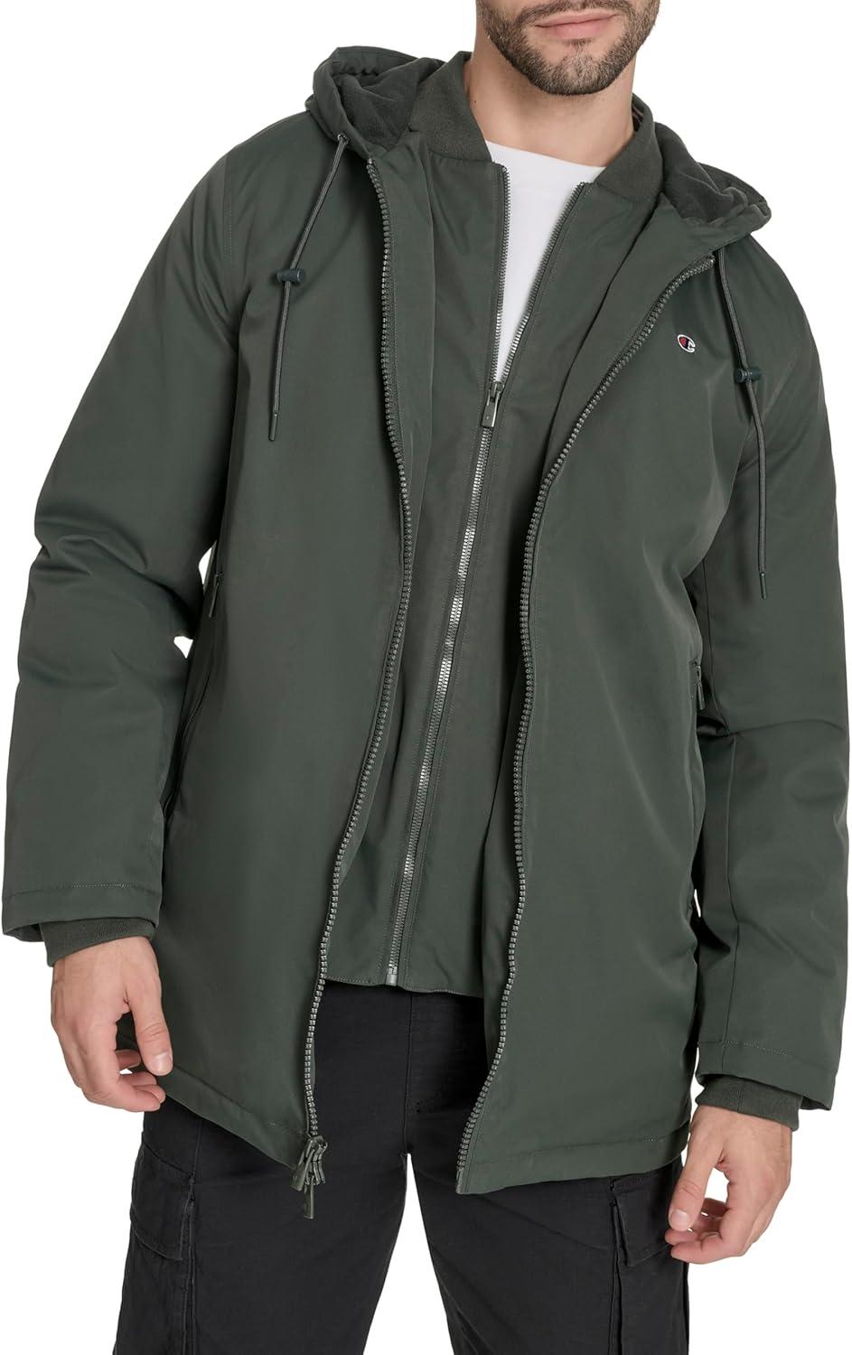 Stay warm and stylish with our Champion mid-length hooded performance jacket, featuring a cozy interior Sherpa lining for ultimate comfort. Designed for durability and versatility, this jacket is perfect for any adventure, combining classic style with modern functionality.